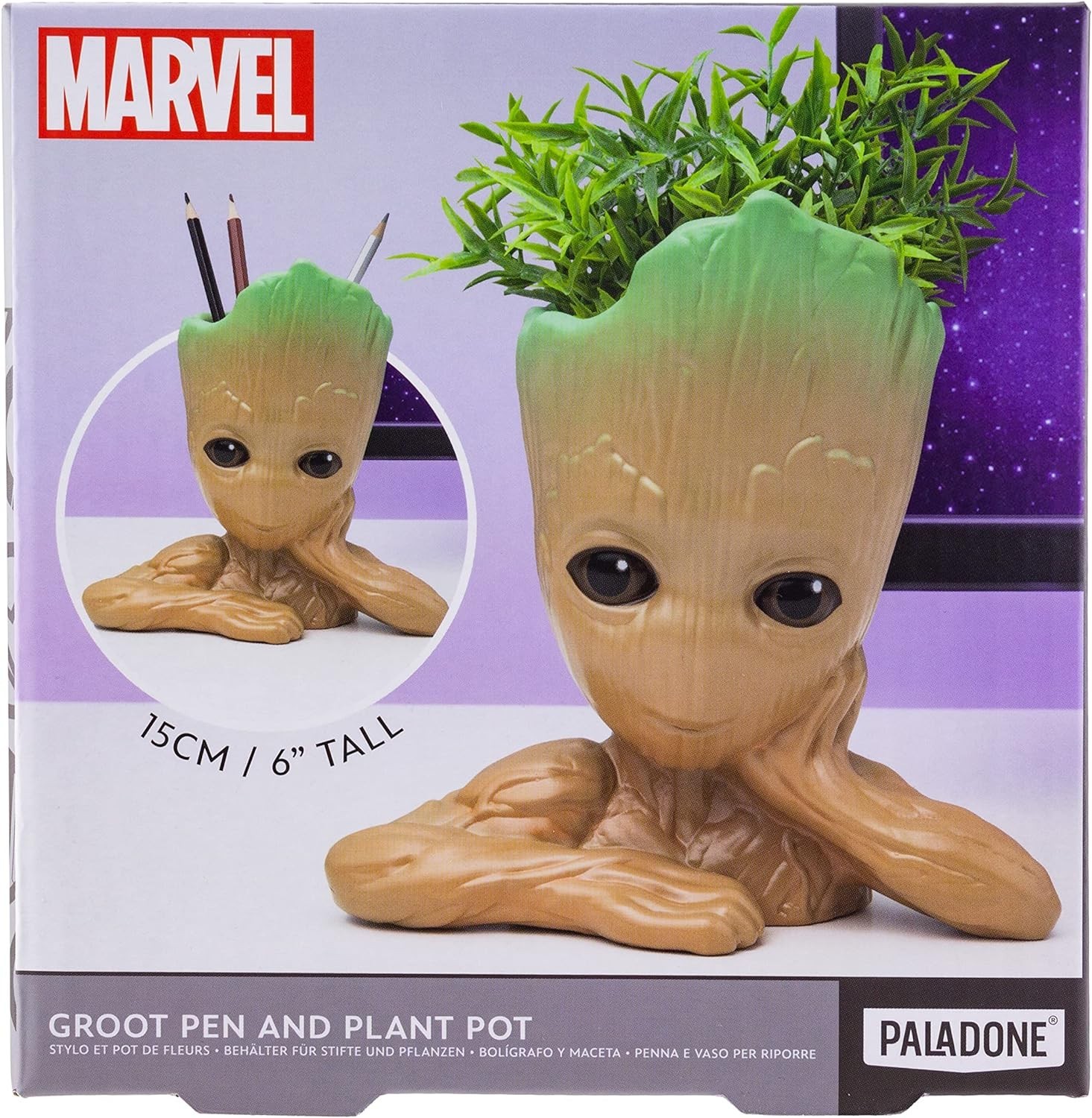 Paladone es la marca famosa en la galaxia entera por sus réplicas de calidad excelsa de productos y personajes salidos de las sagas más famosas del cine, y atento a lo que nos ha traído en la nave Milano esta vez. Nada menos que al mismísimo Groot de, el miembro más orgánico de los Guardianes de la Galaxia. Basado en la apariencia que luce el personaje en sus años mozos, este bote para bolígrafos que también puedes usar como original maceta está hecha de cerámica de gran calidad. Mide 15 cms y viene en una caja temática. Es un producto de licencia oficial Marvel que mirará atentamente como trabajas si lo colocas encima de tu mesa o ayudará a tus plantas a crecer con la fuerza de Groot si lo usas como maceta.