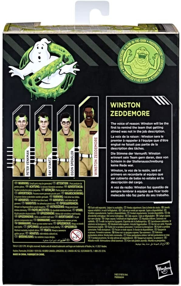 El último miembro de los Cazafantasmas interpretado por Ernie Hudson llega a tu colección de figuras de acción. Pertenece a la Plasma Series, una línea de figuras articuladas de 15 cms con accesorios a juego de cada uno de los personajes de la saga cinematográfica. Winston viene con su mochila de protones y con un rayo atractor, pero lo más novedoso y especial es que ¡brilla en la oscuridad! Juega con el y colócale en tu colección y verás como los restos de slime verde y el rayo brillan, dándole un toque aún más espectacular a este figurón de PVC con licencia oficial. Incluso la decoración de la caja en la que viene parece manchada del slime de Moquete.