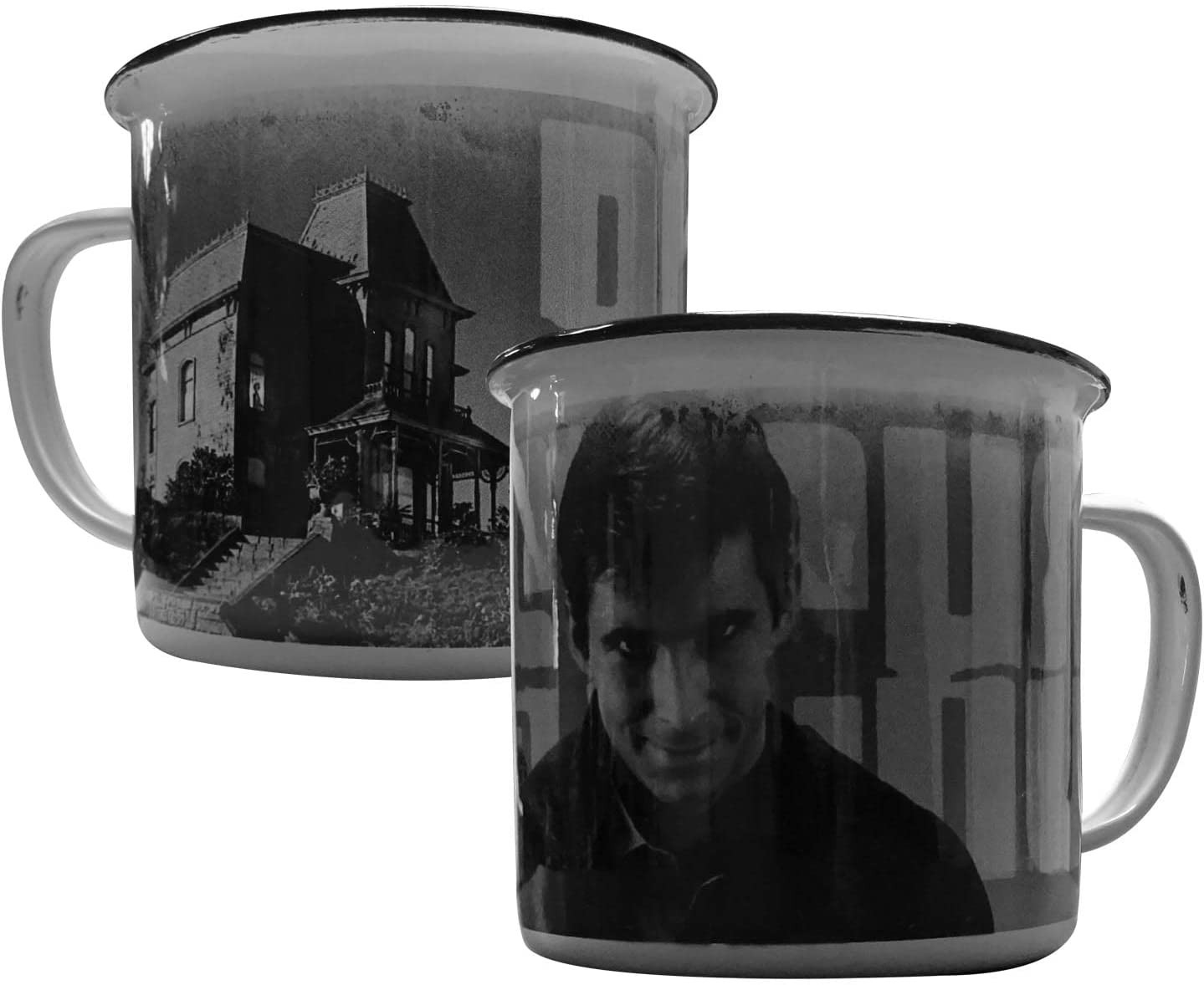 "Psicosis" fue una de las obras cumbre del famoso director británico Alfred Hitchcock. Si eres fan de esta película de suspense ahora podrás disfrutar de tu desayuno con una taza metálica que tiene fotografías de la película. Es una creación de Fan Cinema que no es apta para microondas y que tiene una capacidad aproximada de 300 mls. Atrévete a beber un café con Norman Bates...
