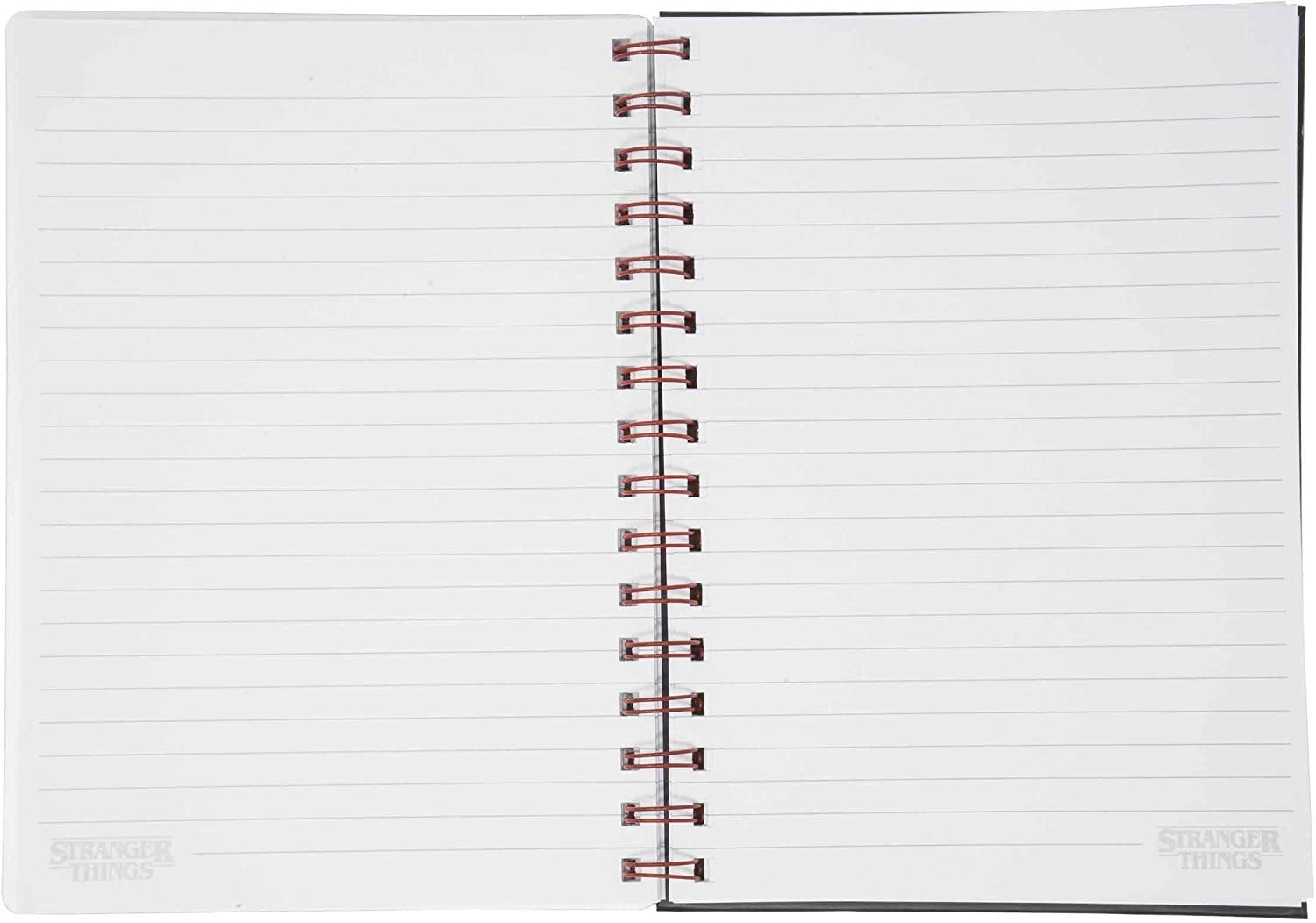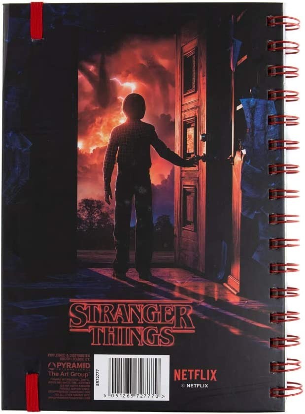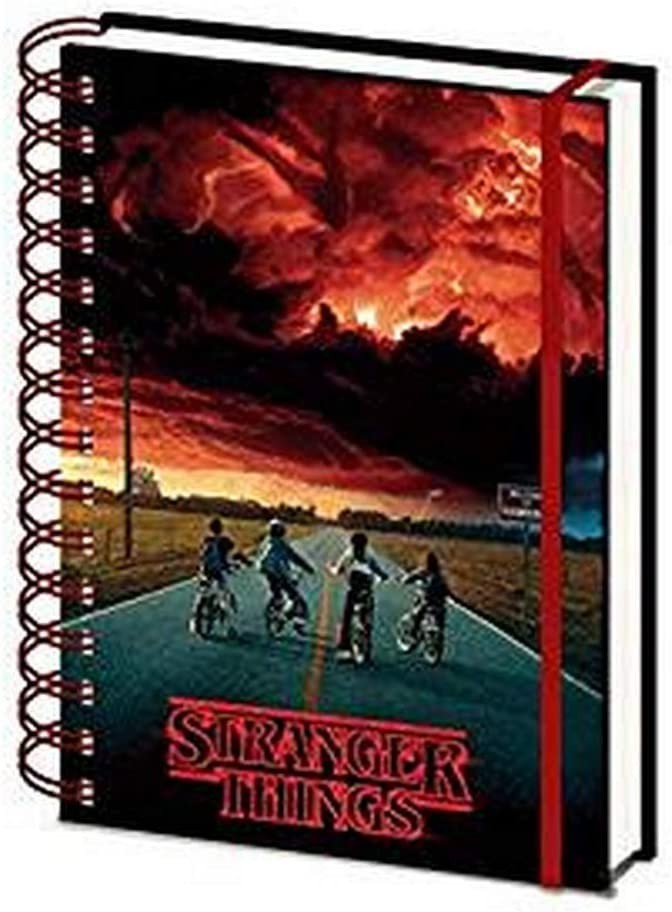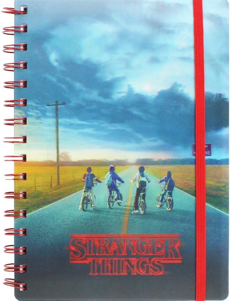 Si quieres llevar tu afición por Stranger Things a cualquier sitio de una forma útil ahora puedes hacerlo con el cuaderno de portada lenticular A5. Con unas medidas de 14,8 cm x 21 cm, este cuaderno de espiral tiene las hojas de color blanco con líneas horizontales. La portada es una foto lenticular de uno de los posters de la segunda temporada de la serie, con los cuatro protagonistas en sus bicis en medio de la carretera de Hawkins viendo como delante de ellos se forma el Mind Flayer (Azotamentes). Un espectacular regalo para los fans de una de las historias que a más espectadores ha atrapado de los últimos tiempos. La marca Pyramid Internacional sigue ofreciéndonos productos de primera calidad basados en las series más queridas de la actualidad.