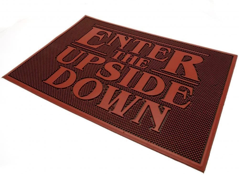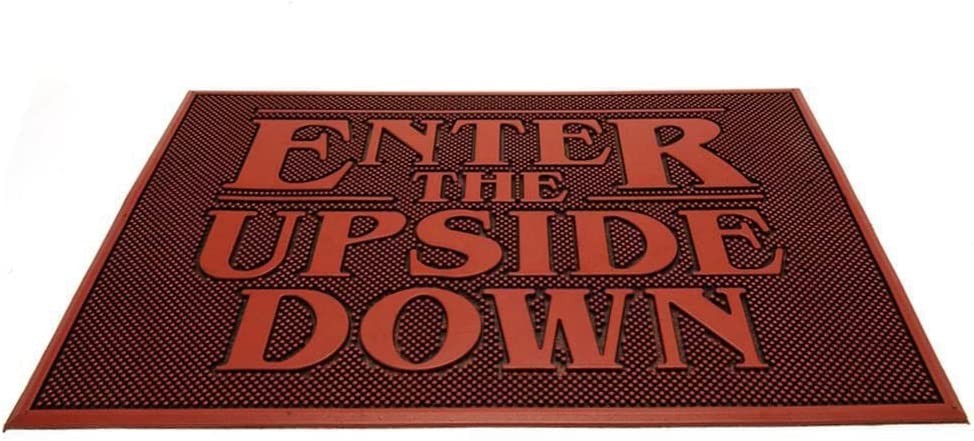 ‘Welcome to the Upside Down’… eso es lo que los visitantes a tu casa leerán cada vez que se planten delante de la puerta. Con este felpudo/alfombrilla de caucho de la marca Pyramid Internacional protegerás a tus visitas de caídas por que tengan los zapatos mojados al mismo tiempo que les adviertes de que se adentrarán en otro mundo cuando crucen el umbral de tu puerta… Tiene unas medidas de 40 x 60 cms y es un producto de licencia oficial de Stranger Things, la serie que ha barrido todos los récords y que nos ha contado una historia de aventura, amistad y terror a lo largo de sus cinco temporadas. ¡Hazte con el felpudo más espectacular de todo Hawkins!