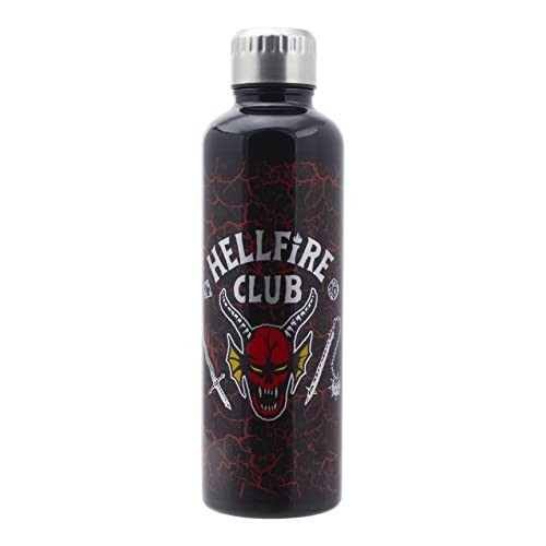 El famoso (en los bajos fondos del instituto de secundaria de Hawkins) Club Hellfire tiene su propia botella y gracias a Paladone podrá formar parte de tu colección. Hecha de acero inoxidable y PVC y con una importante capacidad de 500 mls, esta botella oficial de Stranger Things es un fantástico artículo que mantendrá tus bebidas frías incluso en el mismísimo reino de Vecna. Incluye un sticker del Hellfire Club, la ‘familia’ jugona a la que pertenecieron Mike y sus amigos del instituto cuando echaban partidas a Dungeons & Dragons. Llévatela a cualquier excursión y verás como gracias a su tapón no se derramará ni una gota de la bebida fría que hayas escogido para tu aventura. No es apta para usar en lavavajillas ni microondas.