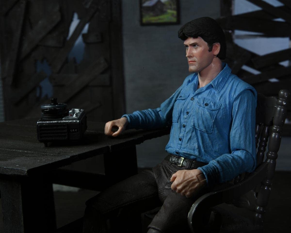 Sam Raimi dirigió en 1981 la que sería una película capital para el cine de terror de ese momento en adelante: “The Evil Dead”. Protagonizada por Bruce Campbell como Ash, tanto la película como su personaje pasarían a ser iconos del cine y volverían a nuestras vidas en una constante rotación de secuelas y versiones. La figura que te traemos hoy aquí es nada menos que la versión Ultimate que ha creado Neca para su línea Reel Toys para el 40 Aniversario de la película original. Celebra este cumpleaños con la detalladísima y articulada figura de Ash que ha sido moldeada y pintada en PVC de gran calidad. Viene en una genial caja temática con tapa que tiene el póster de la película e incluye accesorios como dos cabezas intercambiables, motosierra, dos manos intercambiables, escopeta, hacha, magnetófono y candil. Lucha contra el mal que se alza con este inmortal guerrero.