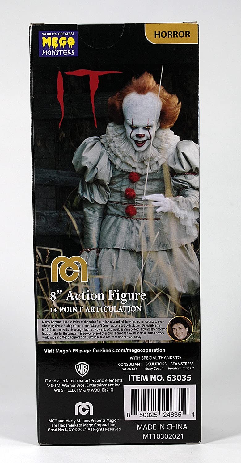 La célebre marca Mego ha creado la figura articulada de uno de los villanos más aterradores salidos de la imaginación del escritor Stephen King. El payaso Pennywise de 20 cms ha sido diseñado basándose en su apariencia en las últimas películas de Warner Bros dirigidas por Andy Muschietti. Incluye un globo rojo que puede coger y posar con él. Con 14 puntos de articulación y un trabajo de pintura y diseño textil impresionantes, esta figura de Mego hará las delicias de los fans del cine de terror y de todo aquel que valore el trabajo artesanal que la marca dedica a todas sus creaciones. Pertenece a la línea Mego Monsters y es un artículo de licencia oficial Warner Bros tan fiel que creerás que el mismísimo Pennywise está en tu casa…