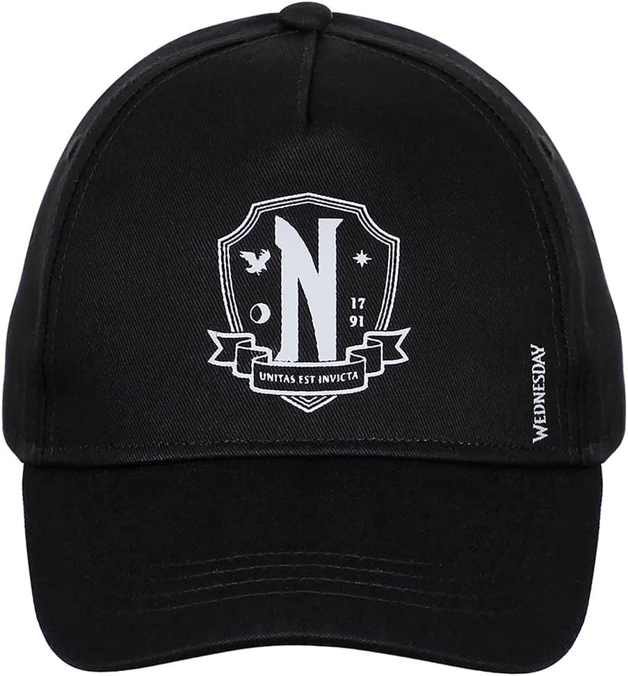Si eres fan de la serie de Netflix, “Wednesday”, protagonizada por Jenna Ortega, tenemos una buena noticia: llega a tu armario la gorra de béisbol de Miércoles. Tiene la visera curva, es de color negro, y en color gris tiene en la parte frontal el escudo de la universidad a la que asistía la ingeniosa Wednesday. Ha sido creada por Karacter Mania y tiene licencia oficial. Está hecha de polialgodón.