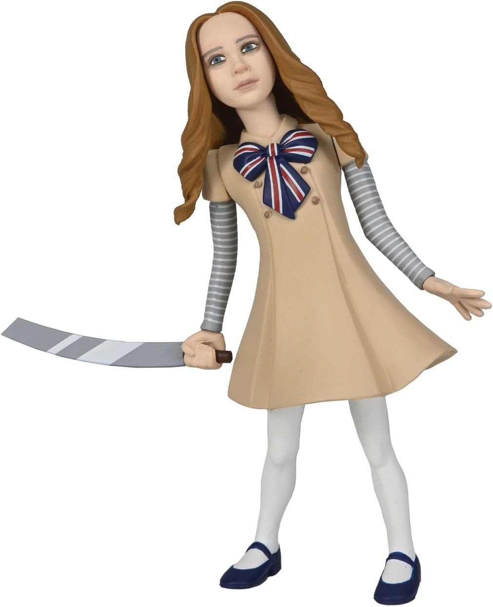 La figura de M3GAN de 14 cms captura perfectamente la inquietante presencia de la muñeca androide de la película "M3GAN", producida por Blumhouse y James Wan. Con un diseño detallado que incluye su vestido característico y expresión perturbadora, esta figura es ideal para coleccionistas y fans del cine de terror. Incluye un machete. Refleja fielmente el terror y la sofisticación tecnológica de M3GAN en un formato más grande y coleccionable. Forma parte de la línea Toony Terrors y Reel Toys de la legendaria marca Neca. Viene en un blíster colorido y totalmente temático que parece la marquesina de un cine.