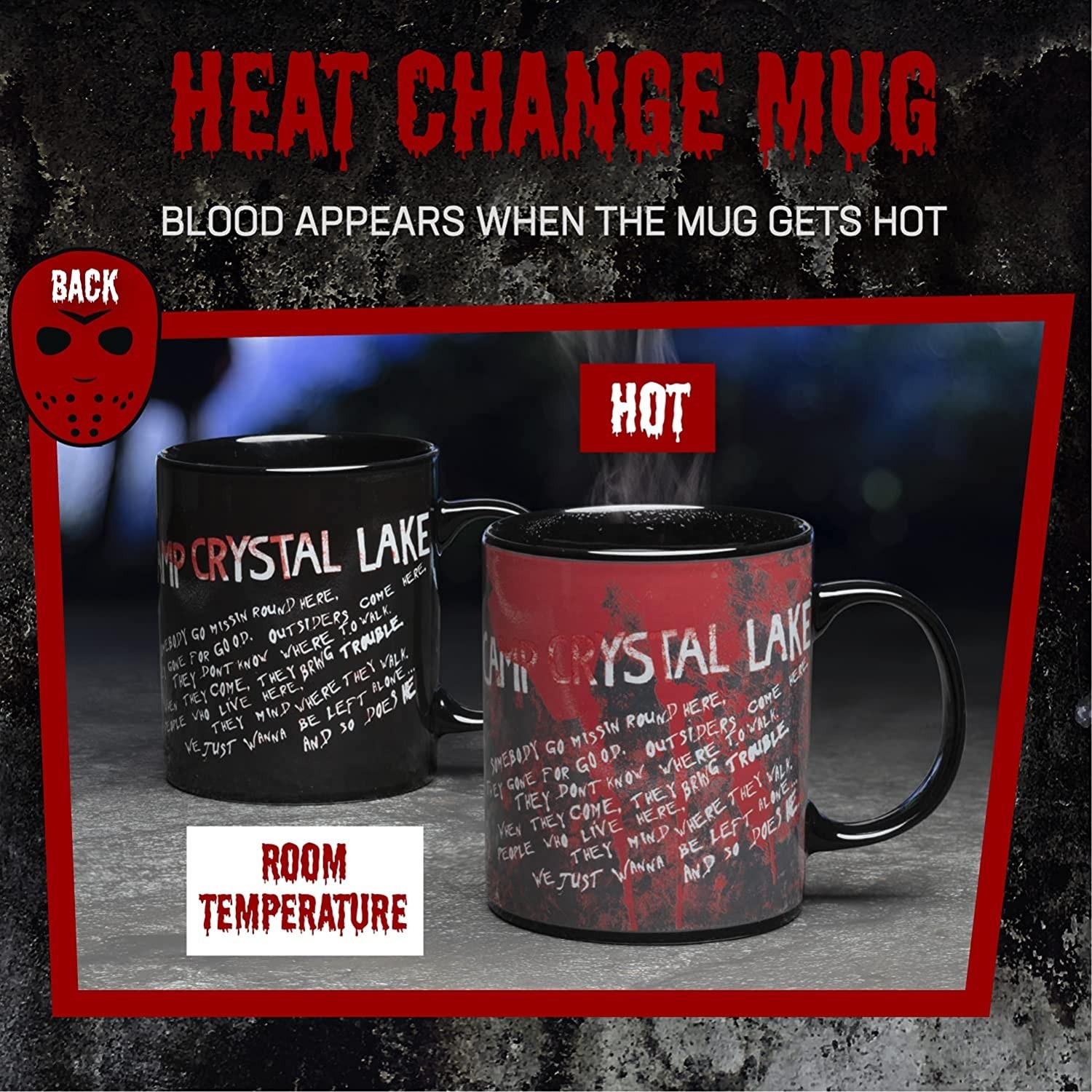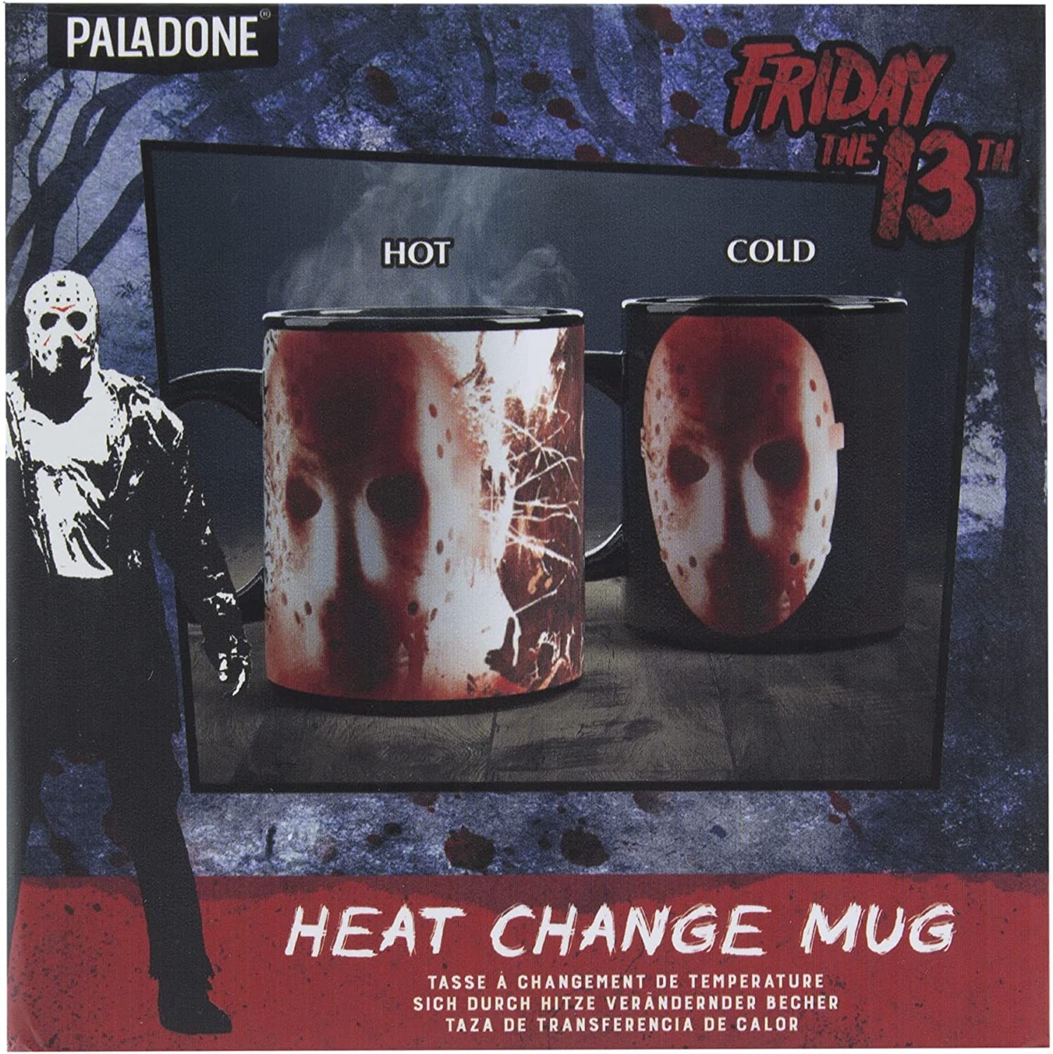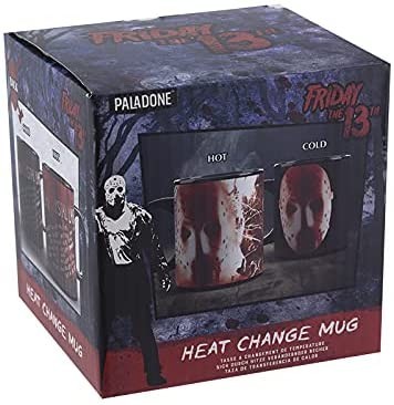 Disfrutar de tu té, café o chocolate preferido con esta taza de Paladone será mucho más fácil que escapar del sanguinario Jason Voorhees, uno de los asesinos más famosos del género 'slasher'. Esta taza de 315 mls de capacidad (aproximadamente) tiene la gracia de que cuando le eches líquido caliente cambiará su diseño. Aparecerá un rastro de sangre sobre el nombre de Crystal Lake y la máscara de Jason se verá rodeada de mucho más color, sacándola de la oscuridad. Si "Viernes 13" es una de tus sagas de referencia del cine de terror, esta taza es un 'must' en tu colección. No es apta para meter al lavavajillas ni al microondas, asi que cuidado o vendrá Jason a por ti...