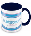 El centro comercial Starcourt era al que iban los protagonistas en la tercera temporada de la serie de Netflix "Stranger Things". Esta taza de cerámica de 315 mls tiene el logo del famoso 'mall' en sus colores característicos azul y rosa. Es una pieza de con licencia oficial y está diseñada y hecha por la prestigiosa marca Pyramid International.