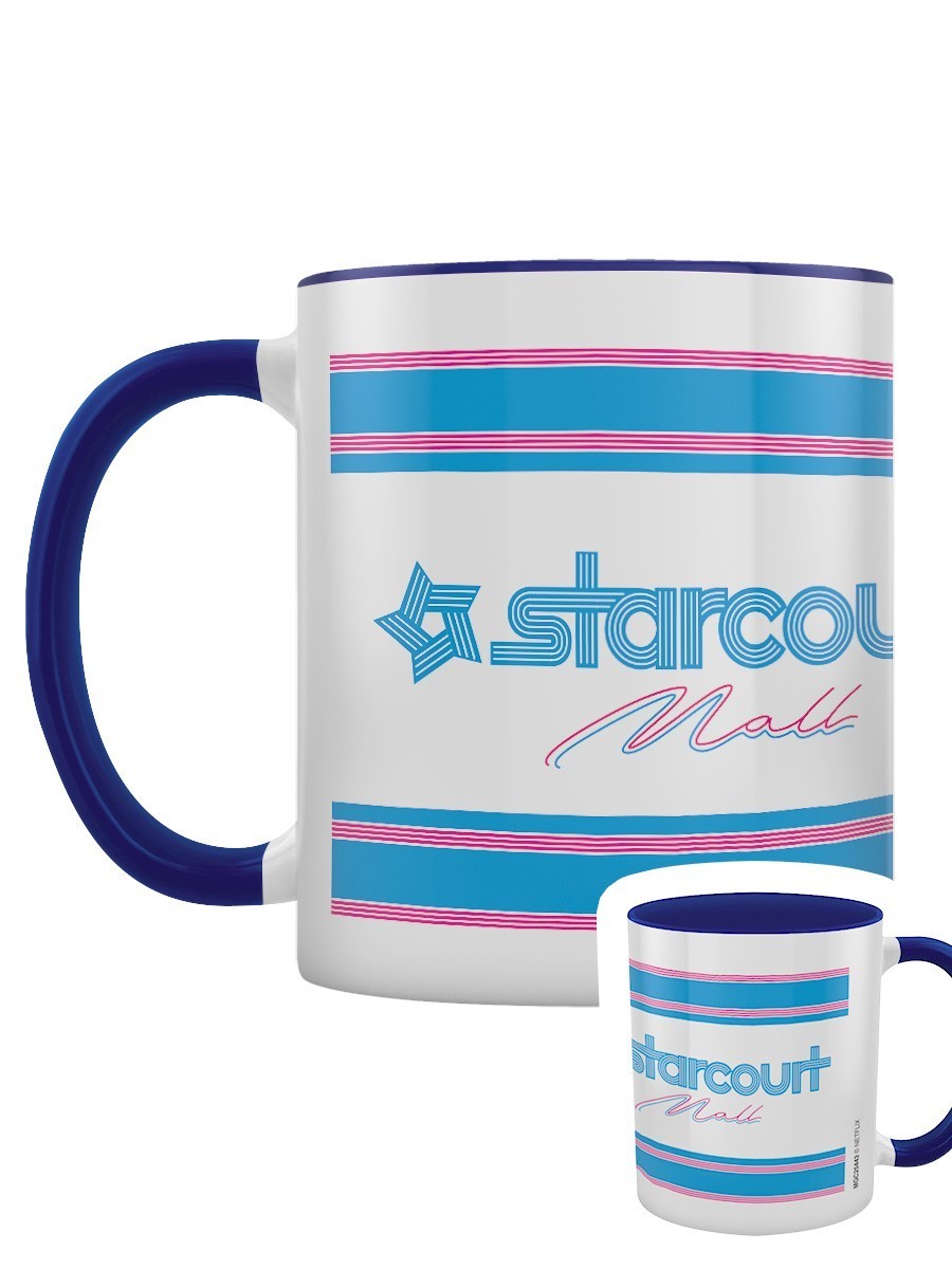 The Starcourt shopping center was where the protagonists went in the third season of the Netflix series " Stranger Things ." This 315 ml ceramic mug has the logo of the famous 'mall' in its characteristic blue and pink colors. It is an officially licensed piece and is designed and made by the prestigious brand Pyramid International .
