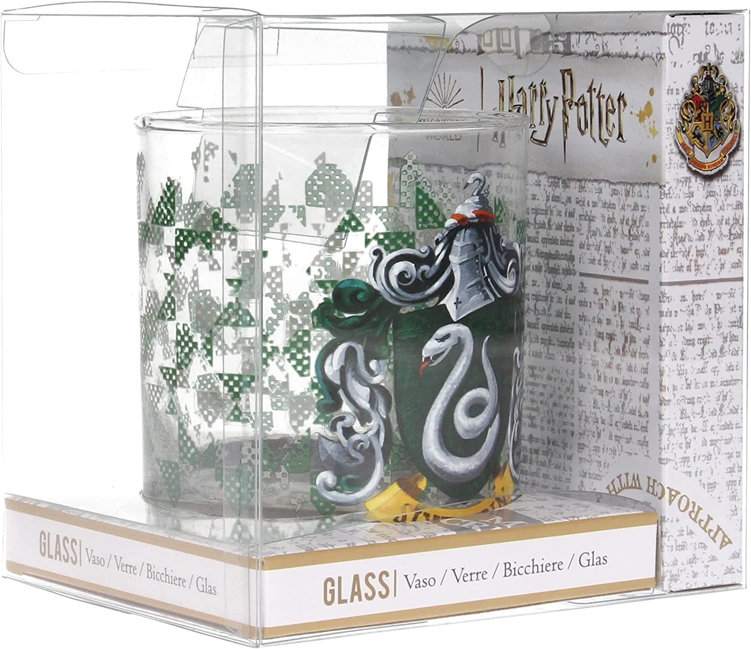 Los fans de Harry Potter tendrán a partir de ahora uno de los vasos más chulos inspirados en el universo creado por la escritora inglesa JK Rowling. Con licencia oficial del Wizarding World y hecho por SD Toys, este vaso de cristal tiene el flamante escudo de la casa Slytherin, con la serpiente símbolo de la misma de forma prominente en el centro. Forma parte de esta casa de Hogwarts, el famoso colegio al que acudieron Harry, Ron y Hermione y siente la magia de este mundo único cada día al usarlo. Viene en una caja transparente de exposición que tiene el logo de Hogwarts. Es apto para usar en lavavajillas y microondas y tiene una capacidad aproximada de 300 mls.