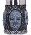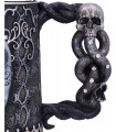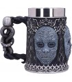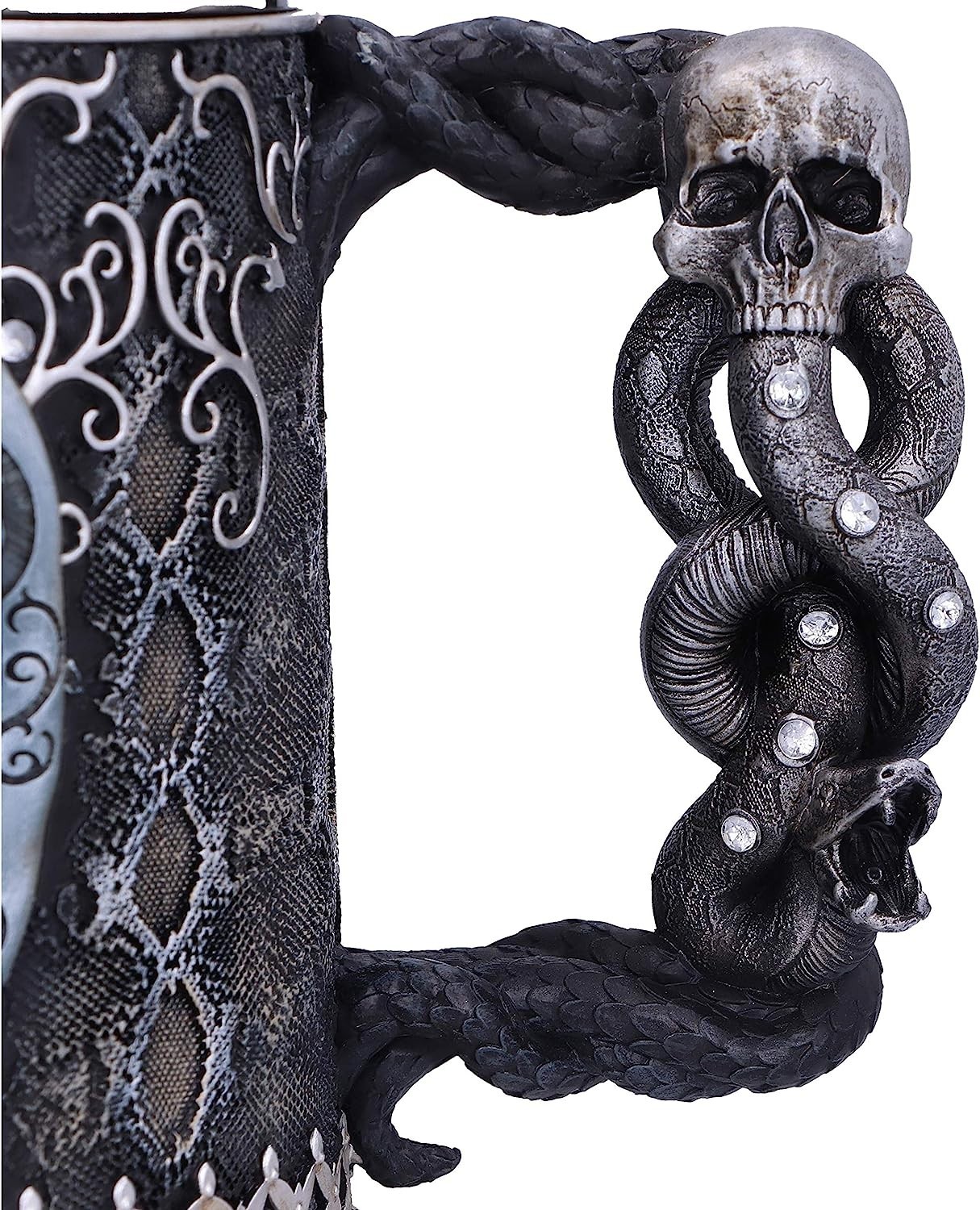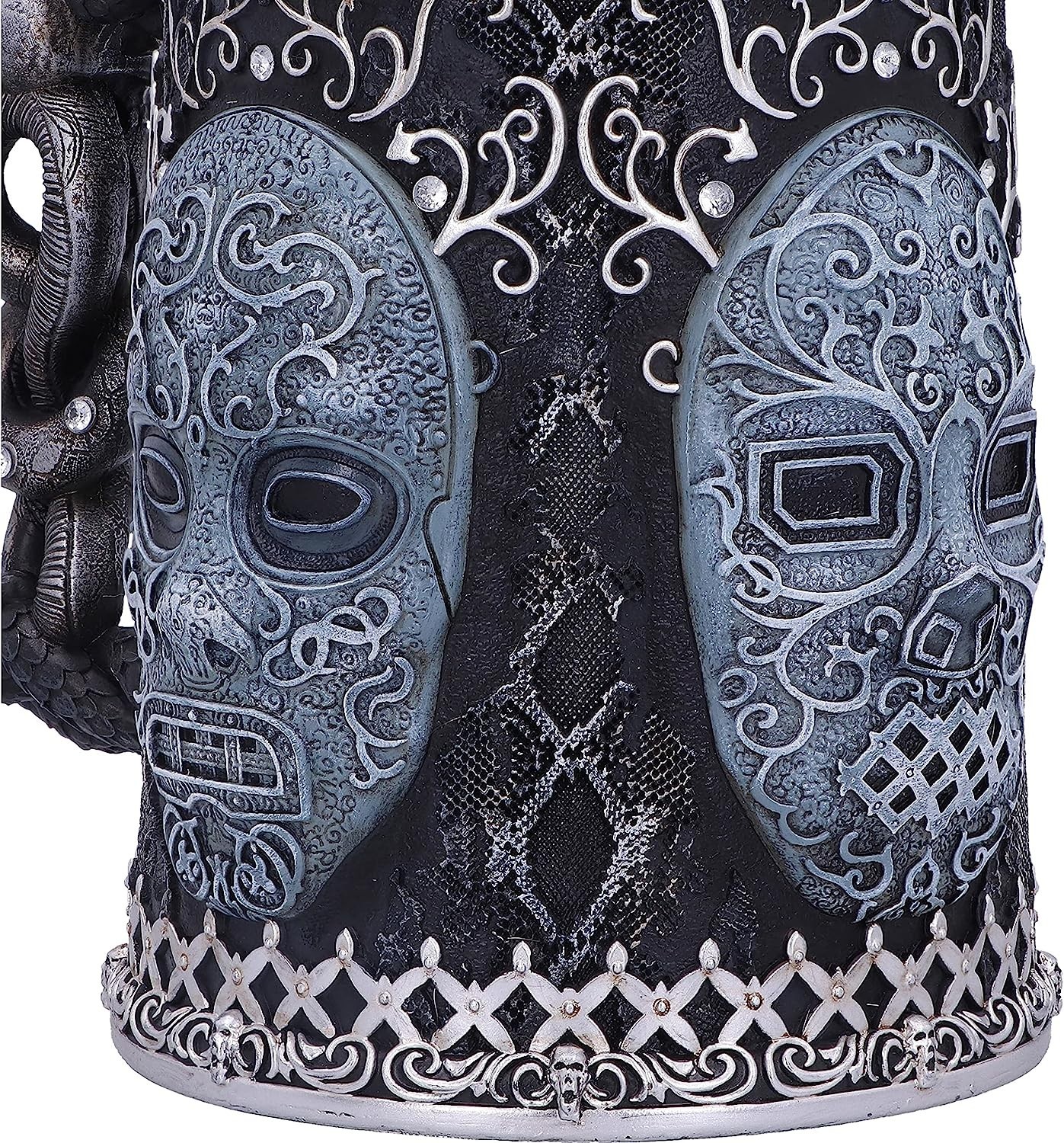 Los aliados de Voldemort también tenían sus accesorios para cuando se relajaban entre batallas. Ahora, gracias a Nemesis Now, puedes hacerte con una exclusiva jarra coleccionable de cerveza inspirada por estos siervos oscuros. La jarra de mortífago mide 15,5 cms y está hecha de acero inoxidable y polirresina que ha sido pintada a mano con un detalle increíble. Es un artículo de licencia oficial del Wizarding World y Harry Potter, y viene en una caja temática con una funda protectora. No es apta para lavavajillas ni microondas. El detalle de su asa con la calavera y las piedras incrustadas rivaliza en calidad sólo con el exquisito relieve de la superficie de la jarra, mostrando una de las aterradoras máscaras de los mortífagos.