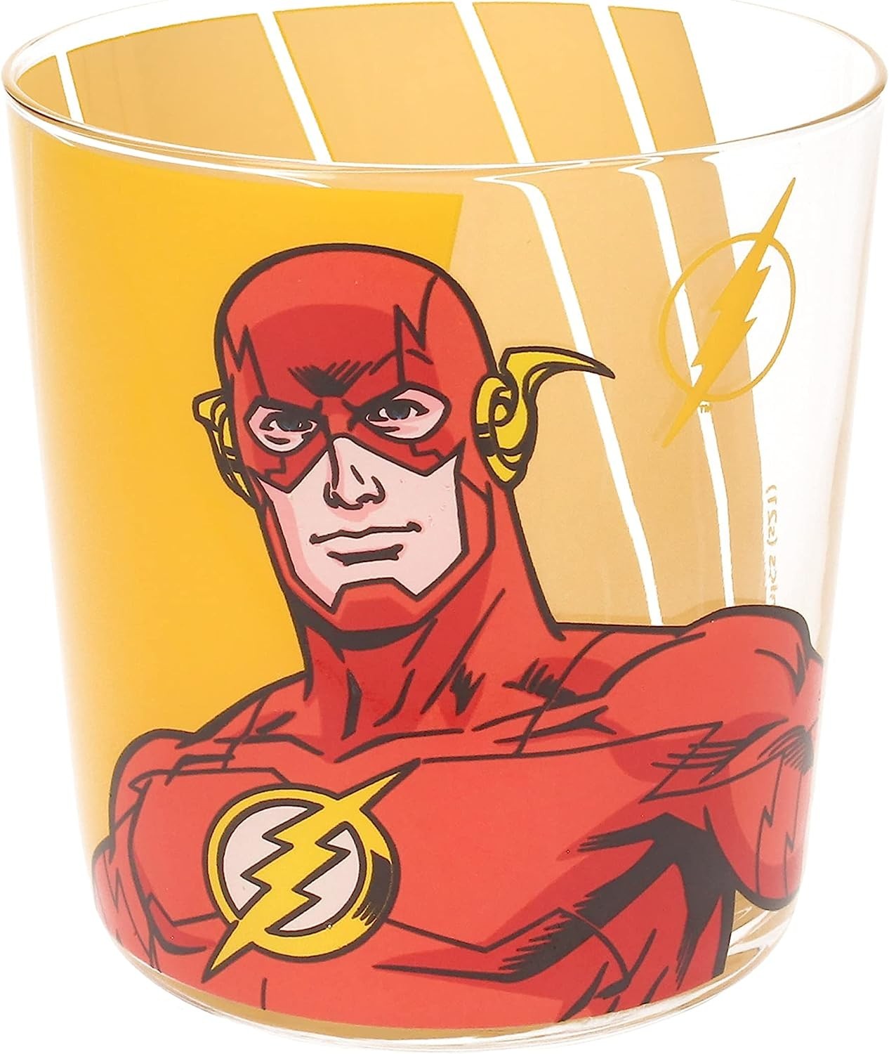 ¡A la velocidad del rayo llega este exclusivo vaso de cristal de Flash! El velocista escarlata de DC está representado en una ilustración en la superficie de este vaso de 370 mls de capacidad que tiene licencia oficial de DC y ha sido creado por SD Toys. Es apto para usar en lavavajillas y microondas. ¡Corre a beber tus bebidas favoritas con Flash!