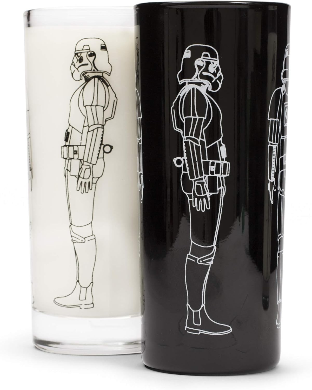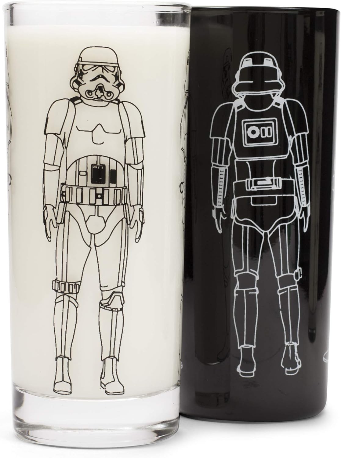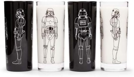 ¡Cuatro! Si si, cuatro vasos son los que podrás tener con este set de vasos de Original Stormtrooper, la marca de licencia oficial de Star Wars que ha sido creada por Shepperton Design Studios, uno de los hogares de la trilogía original de películas. Son vasos de cristal de 300 mls que no son aptos para lavavajillas ni microondas. Son negros y transparentes, y tienen ilustraciones de los soldados imperiales en sus superficies. Vienen en una elegante caja blanca con el logo de Shepperton Studios y fotografías de tus nuevos vasos favoritos.