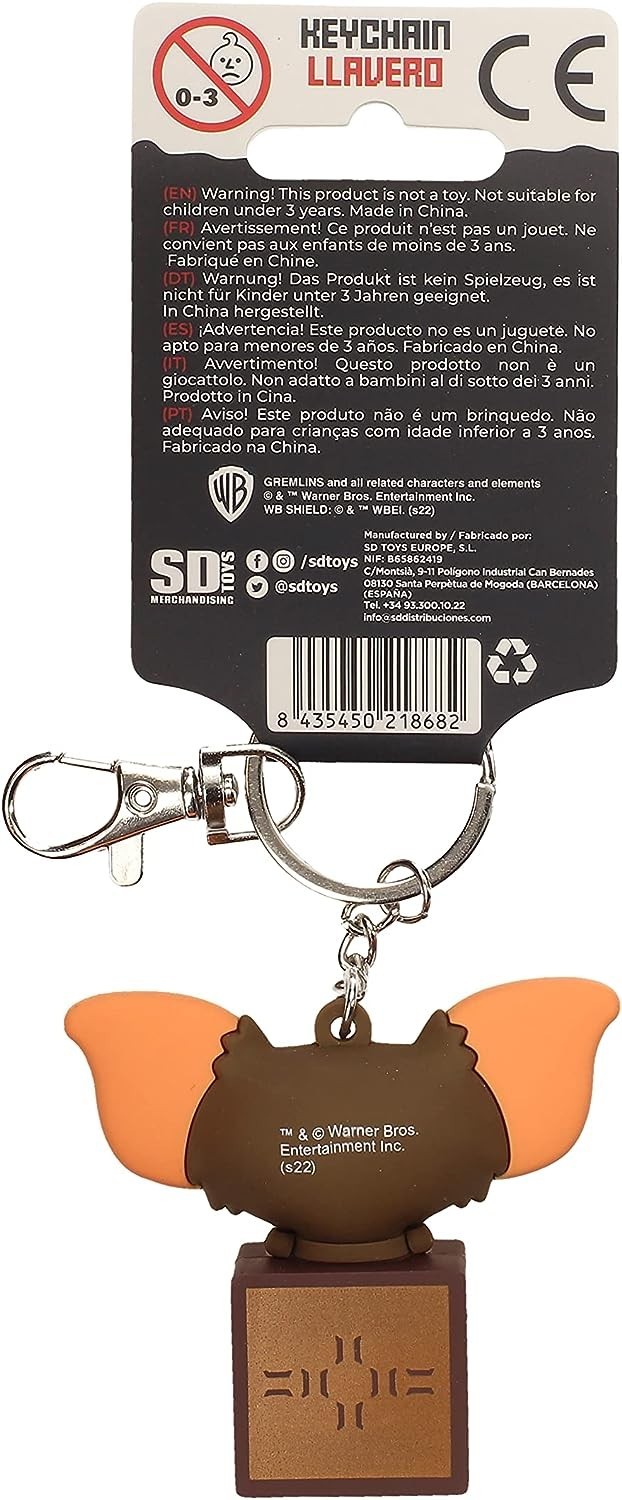 Toda saga tiene su héroe, y el de Los Gremlins, la icónica película de los años ochenta producida por Spielberg, tenía a uno muy especial (y peludo): Gizmo. Esta criatura llega en forma de llavero de licencia oficial Warner Bros. gracias a la marca SD Toys. Está hecho de PVC y mide 6 cms. El simpático Gizmo con diseño cabezón está saliendo de la cajita en la que vivía antes de vivir su nueva vida. La cadena es metálica. Hazte con él y lleva contigo la magia de los ochenta allí a donde vayas.