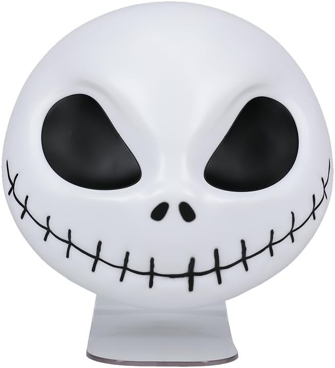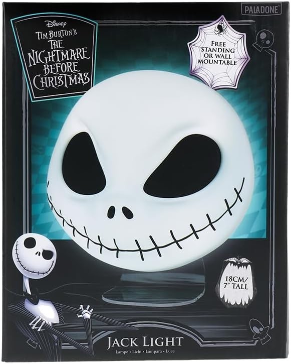 Jack Skellington es posiblemente uno de los personajes más reconocibles e icónicos de los imaginarios de Disney y Tim Burton. La película dirigida por Henry Sellick “Pesadilla Antes de Navidad” nos trajo a este protagonista de largas extremidades y corazón de bribón. Paladone ha creado una espectacular lámpara para tu mesilla de noche que es nada más y nada menos que la redondeada cabeza de Jack. Mide 18 cms de altura y podrás colocarla sobre una superficie y acoplarla a una pared. Funciona con 3 pilas AAA no incluidas o con un cable mini USB que si está incluido. Es muy fácil de usar y viene en una caja temática de la película que llevó la animación Stop-Motion en los años noventa a un nuevo nivel.