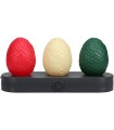 Los auténticos huevos de dragón de la reina Daenerys llegan a tu casa para iluminar tus noches de lectura de la saga de fantasía más famosa de los últimos años. Basados en la serie de HBO “La casa del dragón”, estos tres huevos de dragón de colores rojo, verde y amarillo son en realidad una lámpara que funciona con tres pilas AAA que no están incluidas. Lo que si incluye es un cable micro USB 5V DC 500 mA con el que también funciona. Tienen tres modos, standard, phasing y music reactive. Mide unos 30 cms de largo. Decora tu salón del trono particular con esta espectacular lámpara de la saga más famosa de HBO.
