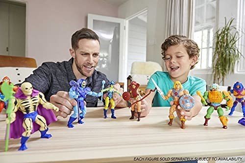 Mattel y Netflix se juntaron para crear la serie "Masters of the Universe: Revelation", que nos hizo volver a la guerra por el planeta Eternia con un trabajo de rediseño espectacular, manteniendo la esencia de los personajes, pero actualizándolos para una audiencia moderna. El He-Man salvaje que viene en esta atractiva caja temática de la serie está articulado e incluye a Orko. Los dos personajes están complementados por una serie de accesorios como dos puños intercambiables para He-Man, un hacha, una espada y una lanza. Disfruta con estas dos maravillosas figuras de PVC esculpidas y pintadas con tanto detalle como los personajes que ves en la pantalla. He-Man mide unos 17 cms aproximadamente.