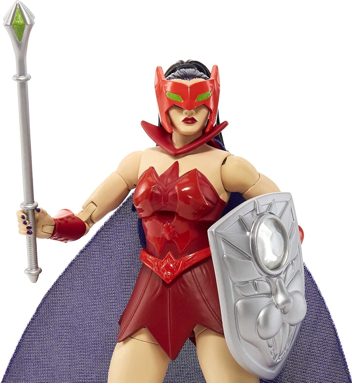 De la colección Masterverse Princess of Power nos llega otra estelar figura articulada de acción, esta vez de Catra, la capitana de la malvada horda de Hordak. Este personaje de Masters del Universo que también salió en la serie de televisión animada "She-Ra: Princess of Power" (lo que hoy en día llamaríamos un 'spin-off') es un híbrido que tiene el poder de convertirse en felino entre otras habilidades. Dentro de la elegante caja negra y azul encontrarás a la villana articulada y los siguientes accesorios: escudo, cetro de poder, dos manos intercambiables y capa. Una poderosa aliada de 18 cms hecha de PVC que está dispuesta a llegar a cualquier lugar para enfrentarse a He-Man, Man at Arms y cualquier otro héroe que sea lo bastante insensato como para colocarse en su camino.
