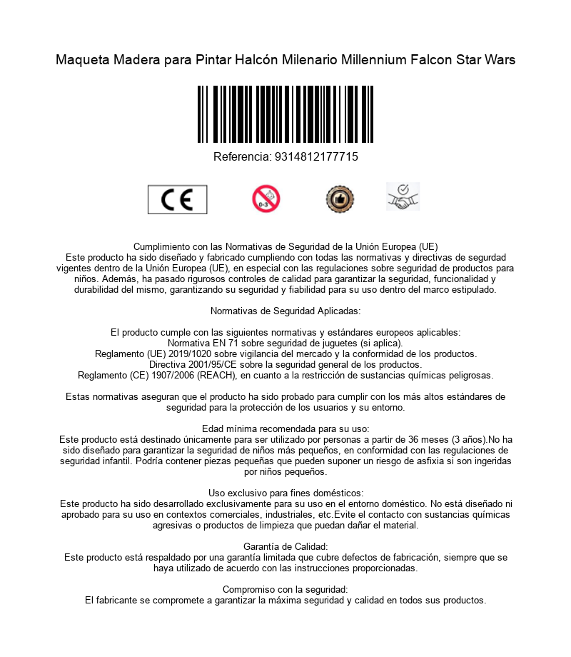Maqueta Madera para Pintar Halcón Milenario Millennium Falcon Star Wars