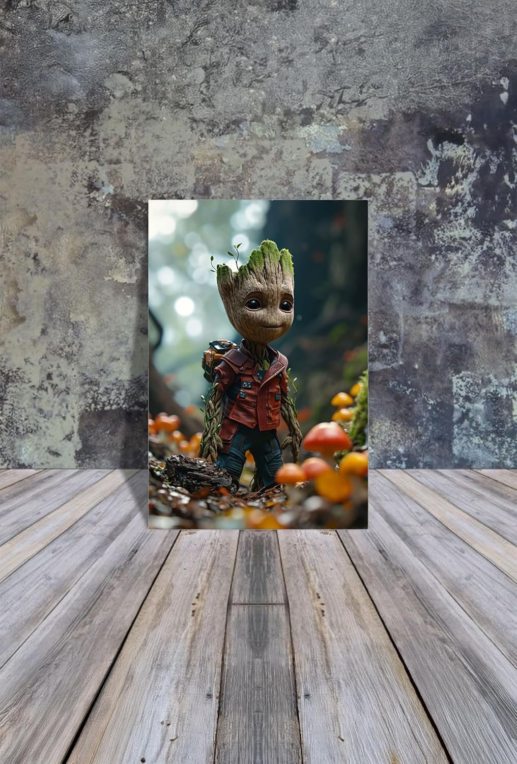 Groot es un miembro de los Guardianes de la Galaxia y se caracteriza por su gran fuerza, capacidad de regeneracion y la frase que se repite constantemente "Yo soy Groot" no esperes más y hazte con tu poster metálico
