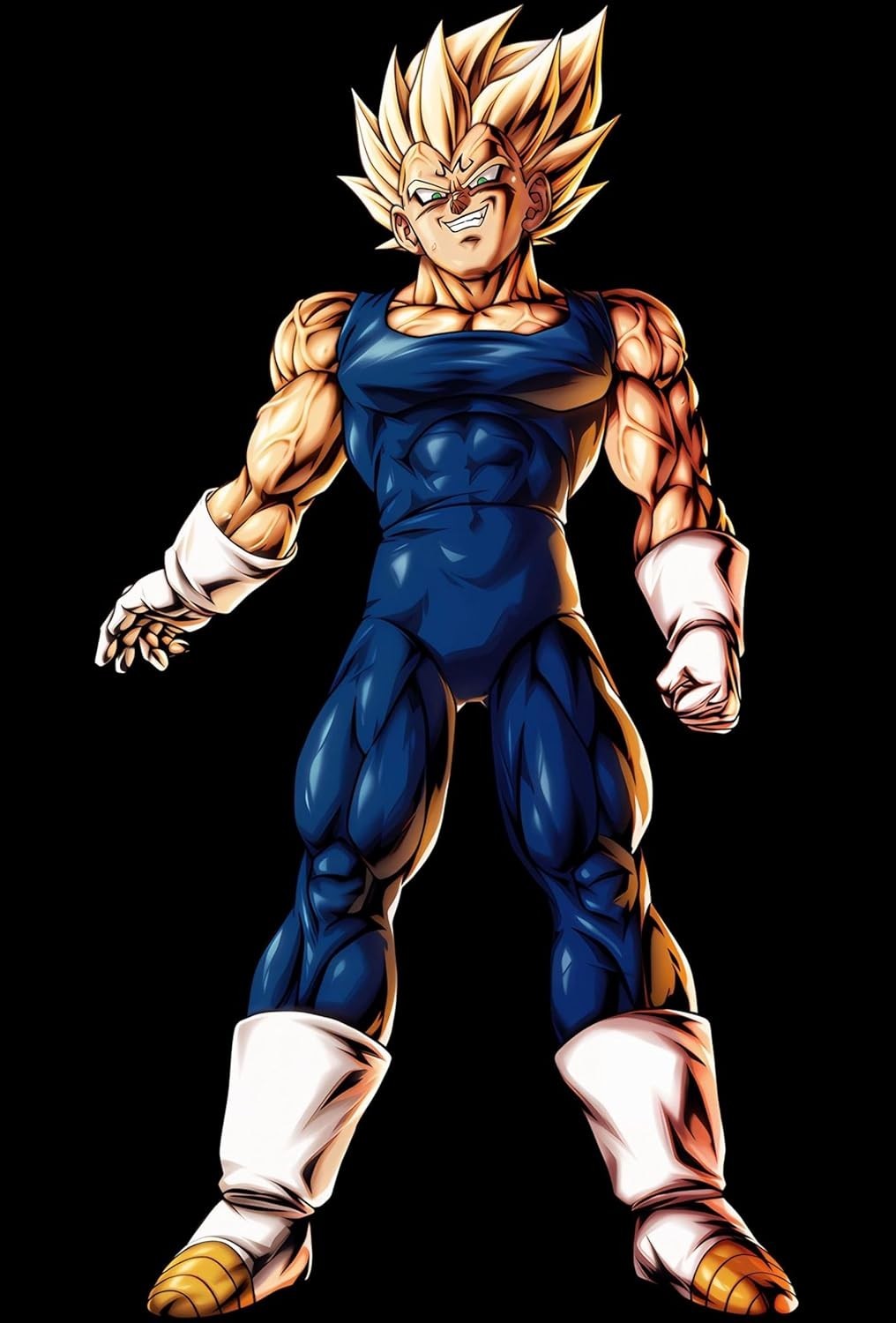 Majin Vegeta permite que Babidi controle su mente para aumentar su poder. Aunque Vegeta se deja poseer, en realidad mantiene su voluntad propia. Lo hace porque desea recuperar la ferocidad de su antiguo yo, el "Príncipe de los Saiyajin", y poder enfrentar a Goku en una verdadera pelea. En esta etapa, su personalidad se vuelve más cruel, orgullosa y sedienta de batalla. A pesar de todo, su amor por su familia sigue presente, como demuestra cuando se sacrifica heroicamente intentando derrotar a Majin Buu. conviertete en un principe con tu Póster Metálico!!!