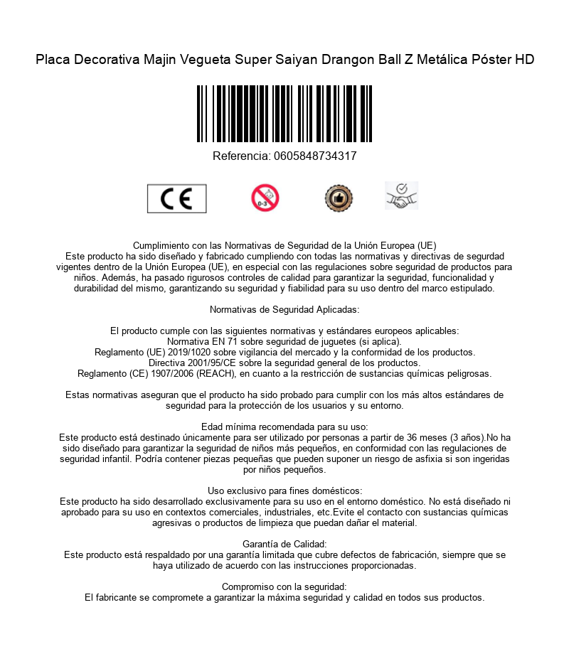 Placa Decorativa Majin Vegueta Super Saiyan Drangon Ball Z Metálica Cuadro Póster HD