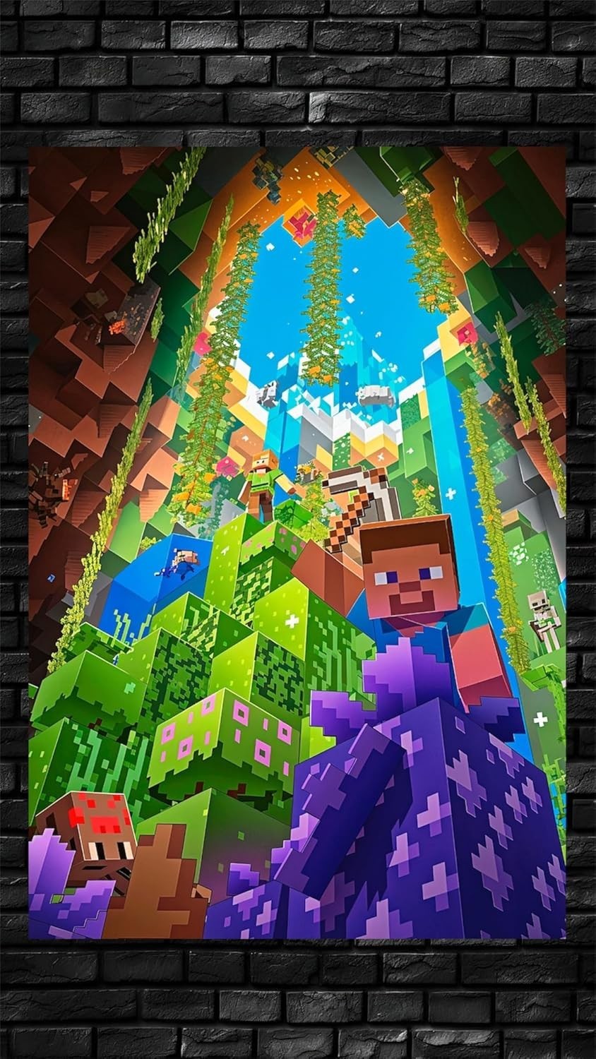 ¡Del mundo pixelado a tu pared! ¡Dale vida a tu espacio con el estilo único de Minecraft!Cuadro metálico con impresión en alta definición, con los personajes y bloques más icónicos del juego. Estilo retro-pixel + acabado brillante = decoración épica Perfecto para gamers, streamers, y fans del universo cúbico. ¡Construye tu mundo, empieza por tus paredes!