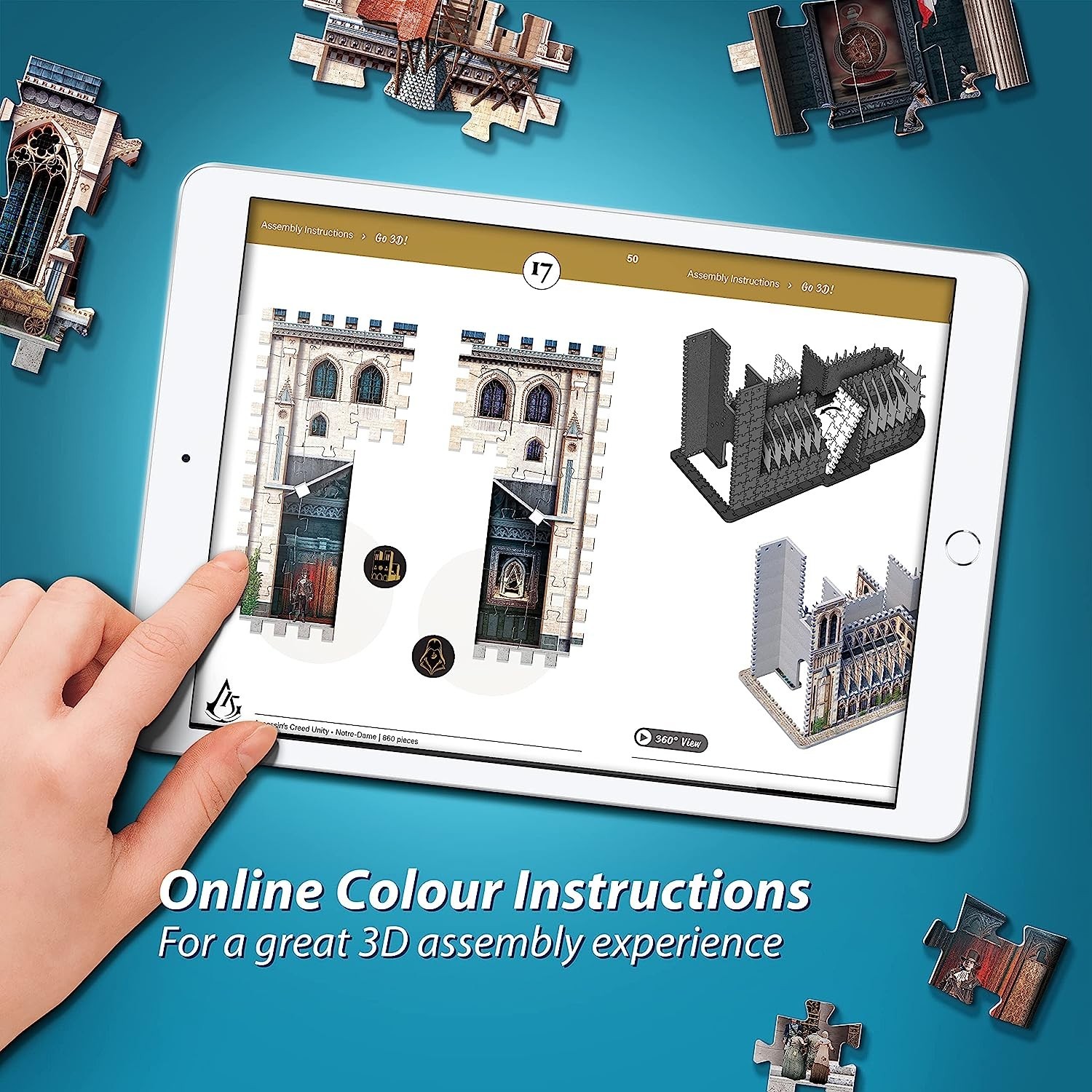 La catedral más famosa de Francia. El videojuego más célebre de Ubisoft. Ahora podrás hacerte con un espectacular puzle que junta dos iconos: la Catedral de Notre Dame de París tal y como sale en el videojuego Assasin’s Creed Unity. Gracias a Wrebbit 3D, con este puzle 3D podrás construir tu propia Notre Dame de unos 56 x 25,5 x 36,75 cms. Incluye 860 piezas de espuma, 39 accesorios de cartón y un libro de instrucciones. Es un producto de licencia oficial de Ubisoft y de Assasin’s Creed. Podrás seguir también las instrucciones de montaje escaneando el código QR que viene en la parte posterior de la caja temática. ¡Da el salto con wrebbit!