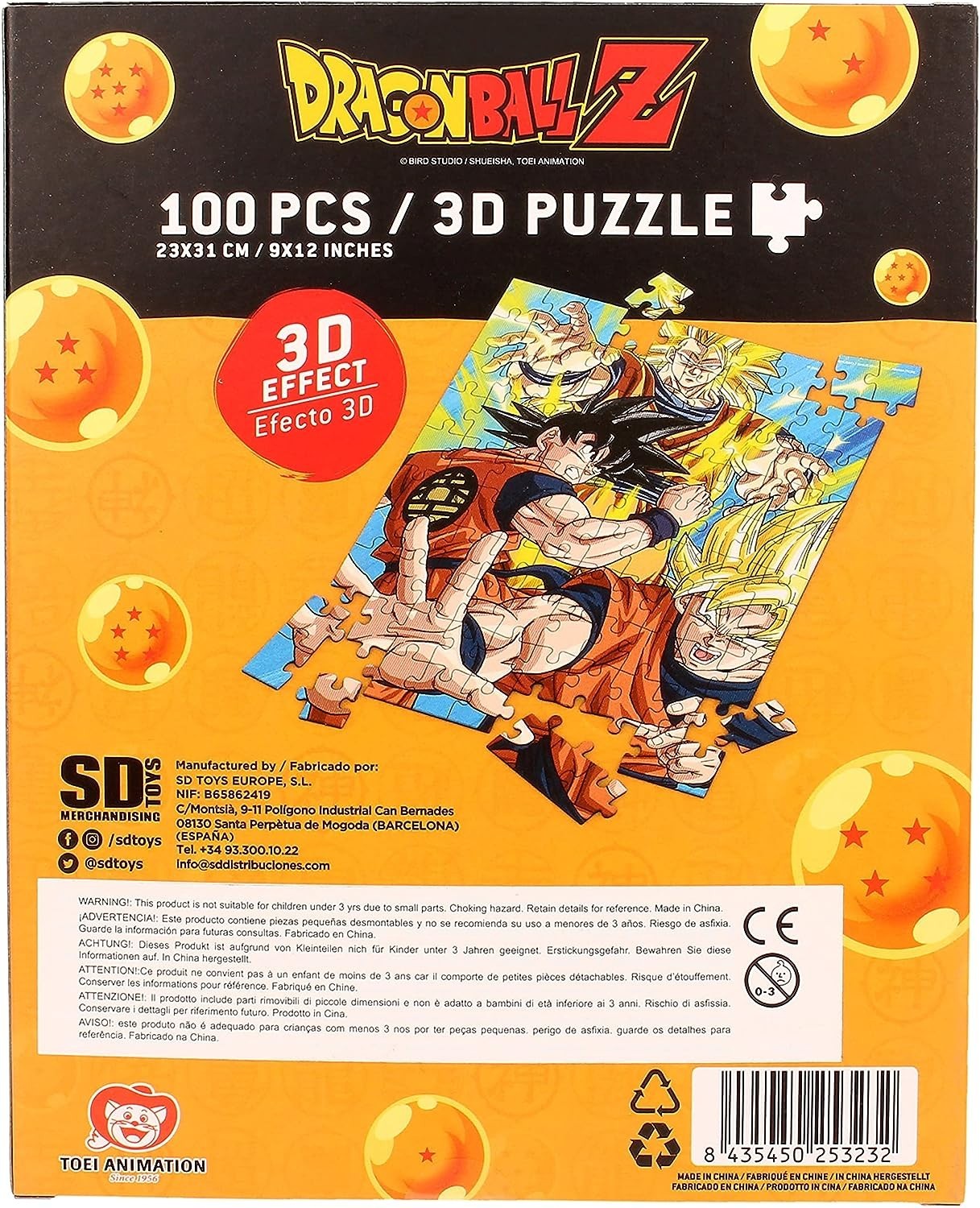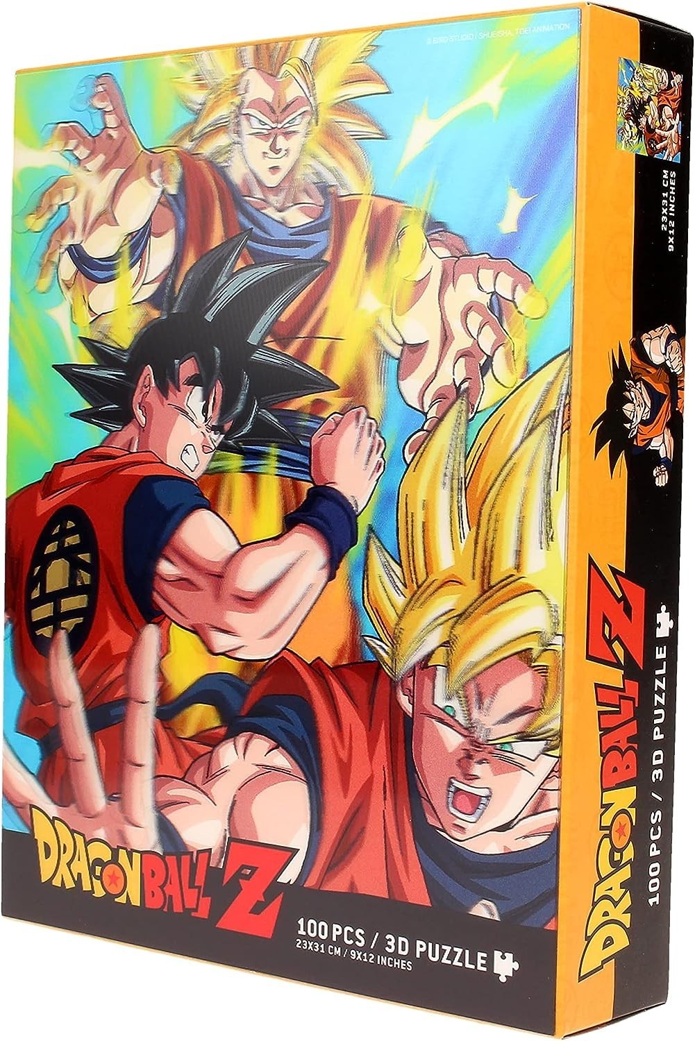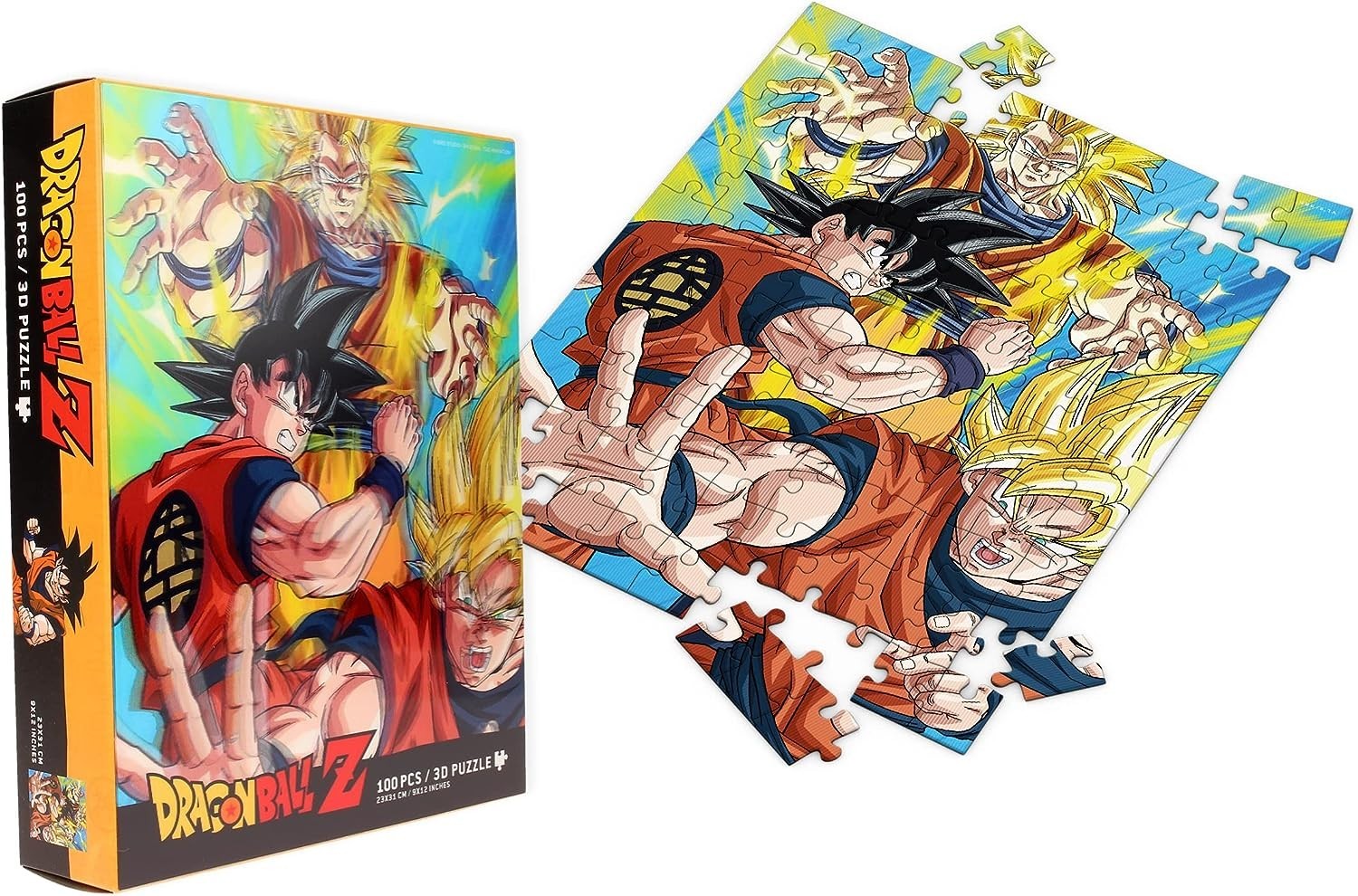 Si te gustan los puzles, te traemos uno inspirado en el manga y anime más famoso de la historia: Dragon Ball Z. Compuesto por 100 piezas de efecto lenticular, este puzle de licencia oficial creado por SD Toys tiene unas medidas de 25 x 31 cms una vez esté acabado. Colócalo en tu rincón preferido y verás como mola su efecto 3D con el que parece que Goku Super Saiyan va a salir volando por tu casa.