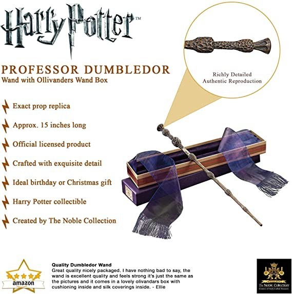 Réplica de la varita mágica de Albus Dumbledore fabricada por la marca especialista en réplicas del universo mágico de Harry Potter: The Noble Collection. Además, la deliciosa recreación empieza ya incluso desde la propia caja en la que viene la varita. Es igual a las cajas de Olivander que aparecían en la primera película de la saga. Hazte con esta exquisita pieza de coleccionismo y lleva un pedacito de la magia de Dumbledore a tu casa con su varita y su caja Olivander.