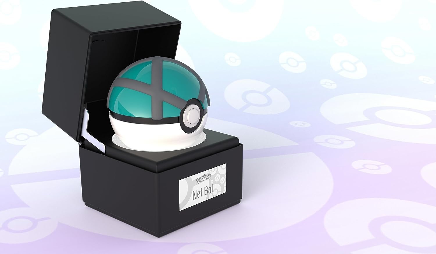 Si hay una cosa que tienen en común todos los fans de Pokémon es el deseo de ser poseedores de una Pokeball o, en este caso, una Net Ball. Estas herramientas que usan los entrenadores Pokémon para atrapar a las criaturas son icónicas y han pasado a ser parte de la cultura popular. La marca The Wand Comany ha creado esta espectacular Net Ball de colores turquesa y blanco que se ilumina al acercar tu mano. Está hecha con un recubrimiento de Die Cast metálico y tiene un acabado brillante, pulido y metalizado increíble. Es una réplica a escala 1:1, el tamaño que tendría una Net Ball en el mundo real, lo que son unos 8 cms de diámetro. Es un producto de licencia oficial sensible al tacto y a la proximidad, por eso el botón se iluminará cuando te acerques. Viene dentro de una lujosa caja para exposición que tiene luces multicolor que brillarán cada vez que abras la caja. La caja mide unos 9 x 10 x 10 cms y tiene una etiqueta holograma en su parte inferior con un identificador y numeración única. También incluye un pequeño aro de acero inoxidable para que puedas colocar la Net Ball en exposición fuera de la caja. Funciona con 3 pilas AA y 3 pilas AAA incluidas. Colecciona esta magnífica pieza de lujo y colócala junto a las otras Pokeball de la colección.