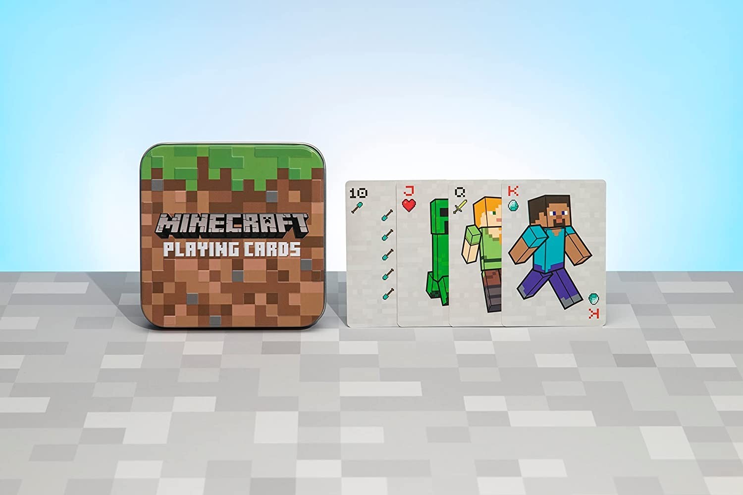 Entra al mundo pixelado más divertido del mundo de los videojuegos y saca esta divertida baraja de 52 cartas (+ 2 comodines + lata de aluminio para transportarlas) y serás la referencia del resto de constructores. Creada por Paladone para los fans de Minecraft, esta baraja francesa está totalmente decorada con figuras y motivos de Minecraft. Echa tus partiditas cuando descanses de crear tu mundo virtual o llévatelas de excursión gracias a su espectacular caja metálica de transporte temática. ¡Usa la cabeza en tus partidas y a por todas!