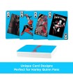 Alocadamente divertida. Harley Quinn, la icónica bufona de DC Cómics, novia del Joker y con una breve pero espectacular historia en las viñetas y en la pequeña y gran pantalla, llega a ahora a tu colección de juegos de mesa. Esta baraja francesa está inspirada por Harley, y en todos los naipes hay ilustraciones a todo color de Harleen con su característico atuendo rojo, negro y blanco de arlequín. Es una creación de licencia oficial DC de Aquarius Images, y viene en una caja azul con letras retro en color rojo.