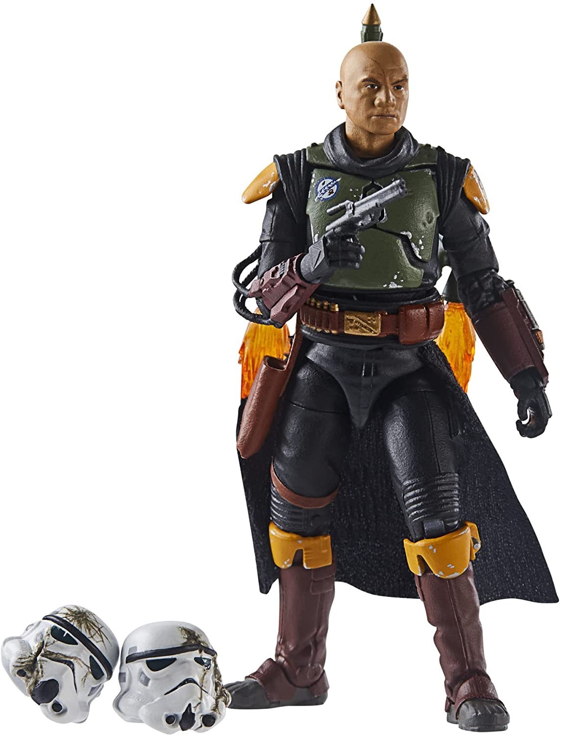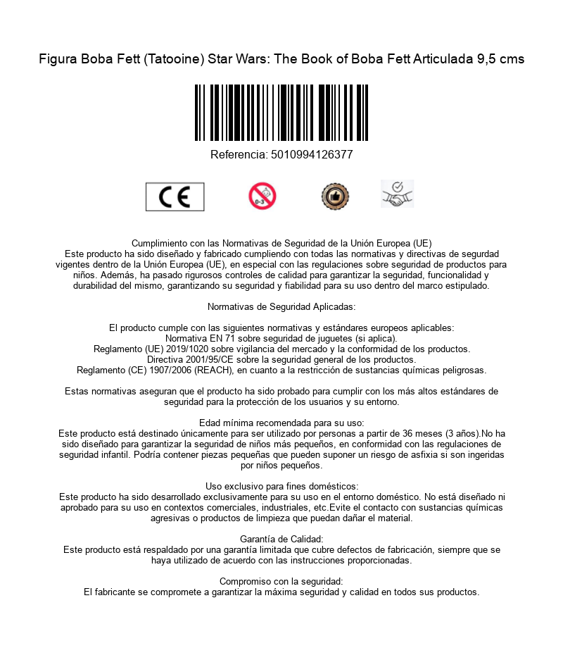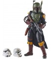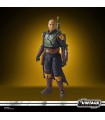 El icónico cazarrecompensas Boba Fett ha tenido por fin su propia serie (proyecto que pasó muchos años en el tanque de bacta a punto de ser una película). De Disney + nos llegó las aventuras de Boba contándonos que había sucedido con el personaje después de haber caído en la boca del Sarlacc en "El Retorno del Jedi". La figura articulada de la colección Vintage de Hasbro y Kenner nos llega en una caja negra coleccionable y contiene al mítico Boba con su mochila jet-pack, su rifle bláster láser, pistola bláster láser, misil del jet-pack, dos cascos de stormtroopers y cabeza intercambiable de Fett sin casco. Cálzate las botas con espuelas (o al menos así sonaban en la primera temporada de "The Mandalorian") y sal a por tus recompensas. Está hecho en PVC.