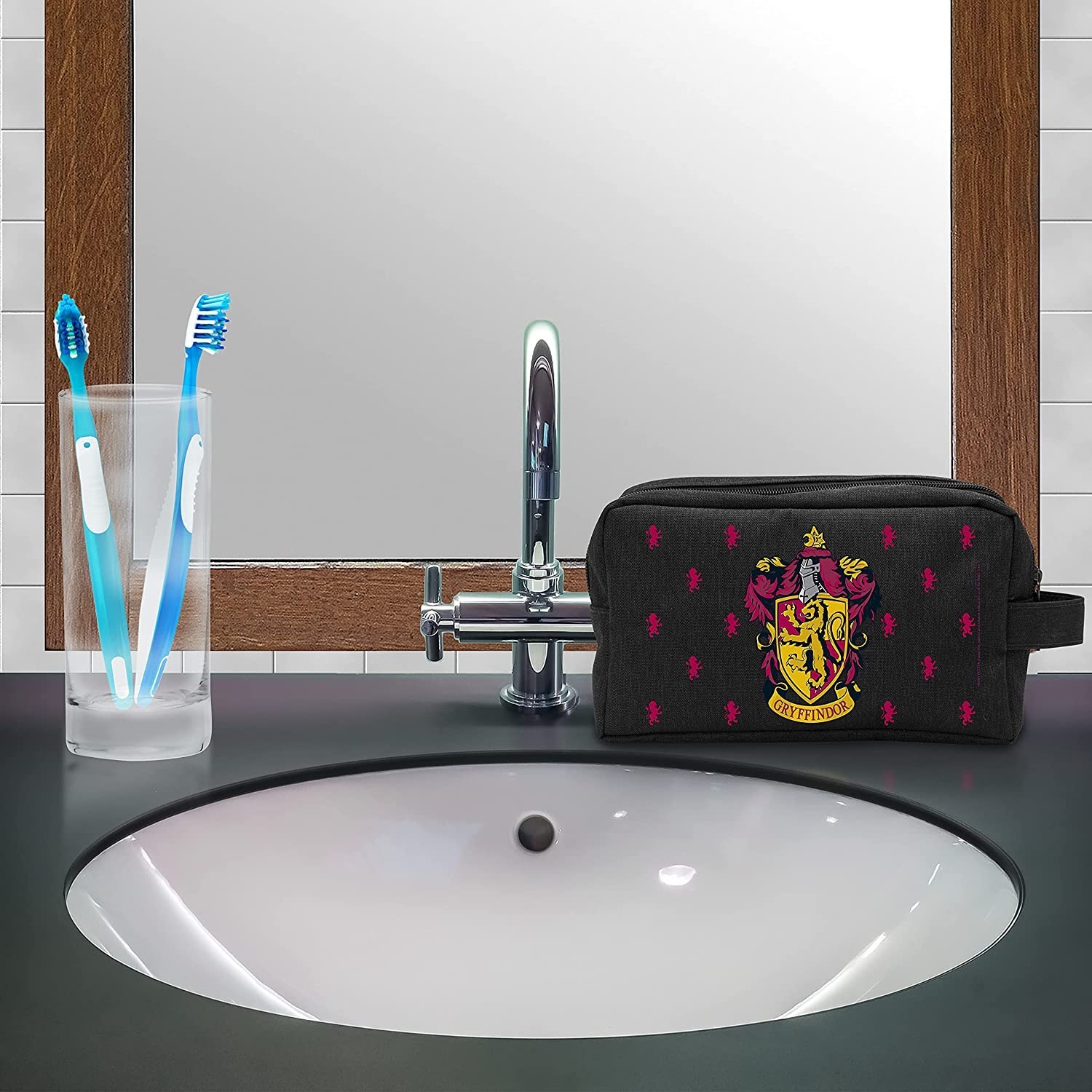 El Colegio Hogwarts de Magia y Hechicería es el más famoso de todo el universo mágico y tiene cuatro casas a las que pertenecen sus alumnos. Si eres fan de la casa Gryffindor, a la que pertenecieron Harry, Ron y Hermione, ahora puedes tener tu propio neceser/bolsa de aseo de la legendaria casa fundada por el mago medieval Godric Gryffindor. El práctico neceser negro de poliéster creado por Abystyle mide 26 x 14 x 8,5 cms y tiene tres bolsillos con cremallera. Es un producto con licencia oficial de la saga mágica que además cuenta con un práctico asa para transportarlo con más comodidad. Sobre uno de sus lados tiene el escudo de Gryffindor a todo color y varios símbolos más pequeños en color rojo del león. Seguro que tú también conoces a un auténtico fan de Harry Potter al que le volvería loco tener este neceser para todas sus aventuras.
