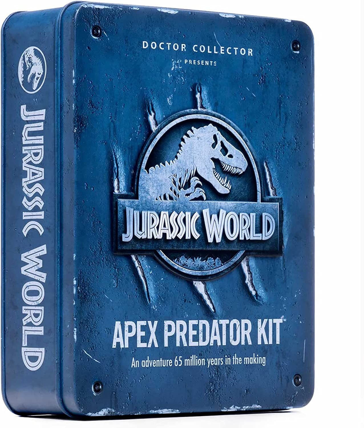 Este espectacular kit de Doctor Collector, junto al de Indominus, son los auténticos 'must' para los fans de la nueva trilogía basada en el mundo jurásico que conocimos de la mano de Steven Spielberg. El kit de bienvenida Apex recrea los que les daban a los visitantes del parque Jurassic World cuando todo parecía que iba a ir sobre ruedas... pero el incidente de 2015 obligó a cambiar esos planes y a cerrar el parque de una vez por todas. Esta caja rinde homenaje a los visitantes más aventureros y contiene dentro de la caja metálica: libro oficial (107 páginas), carta de bienvenida, ticket de entrada pase de visitante VIP con lanyard, bandera de Jurassic World (135x45 cms), mapa del folleto de Jurassic World, pulsera de acceso a Jurassic World, token metálico de Jurassic World, pin de Jurassic World, tarjeta de inscripción del Campamento Cretácico, pin del logotipo de Jurassic World, colección de insignias exclusivas de Jurassic World, postal exclusiva de Jurassic World, 2 pegatinas. Un regalo impresionantemente completo para los fans de JW y de este universo basado en la modificación genética...
