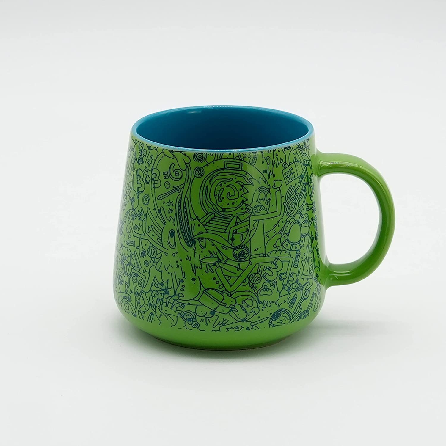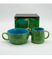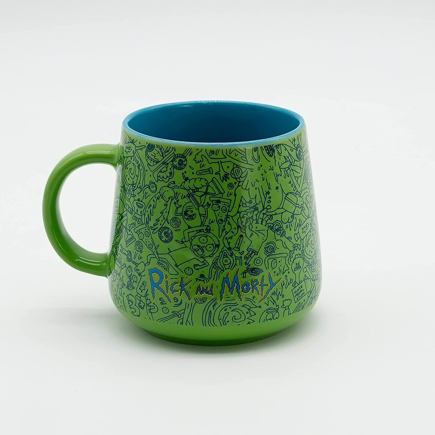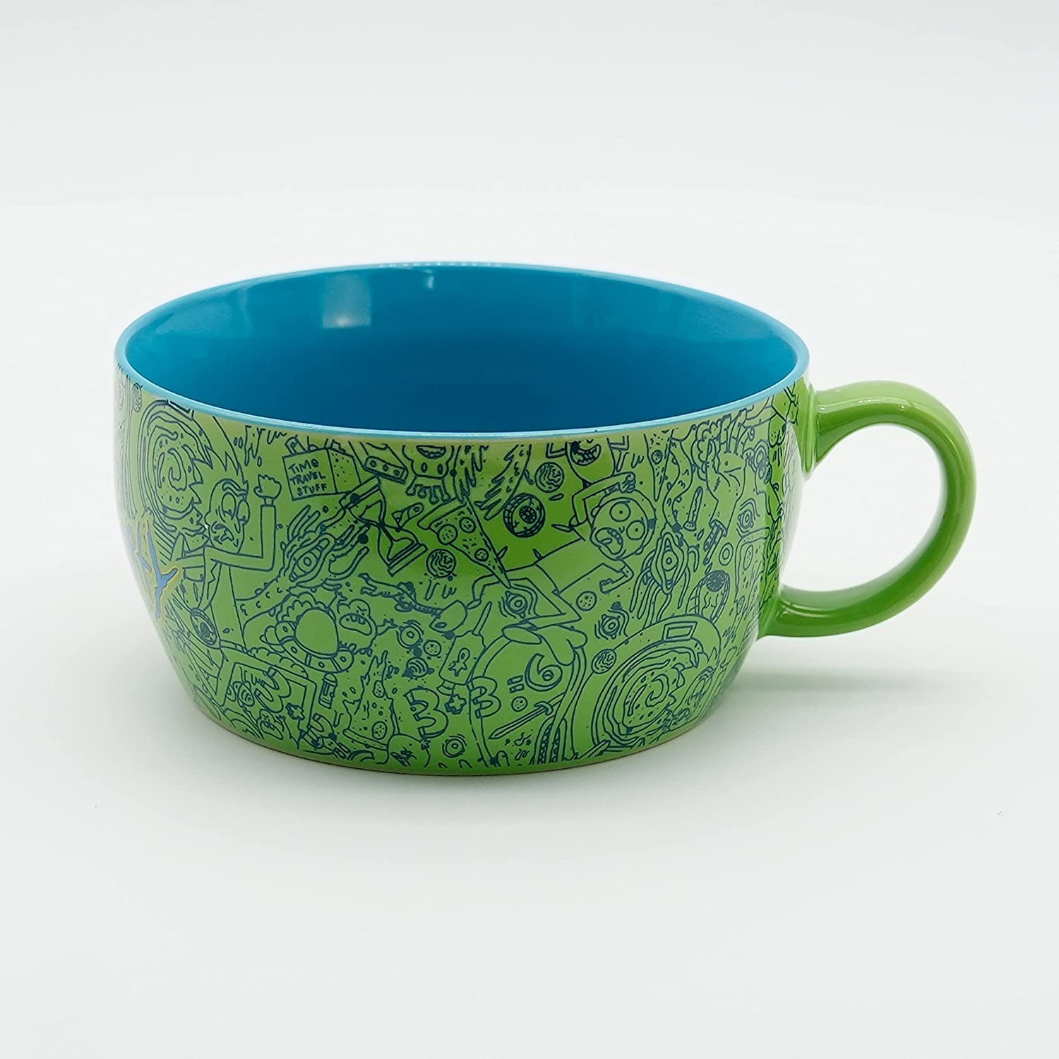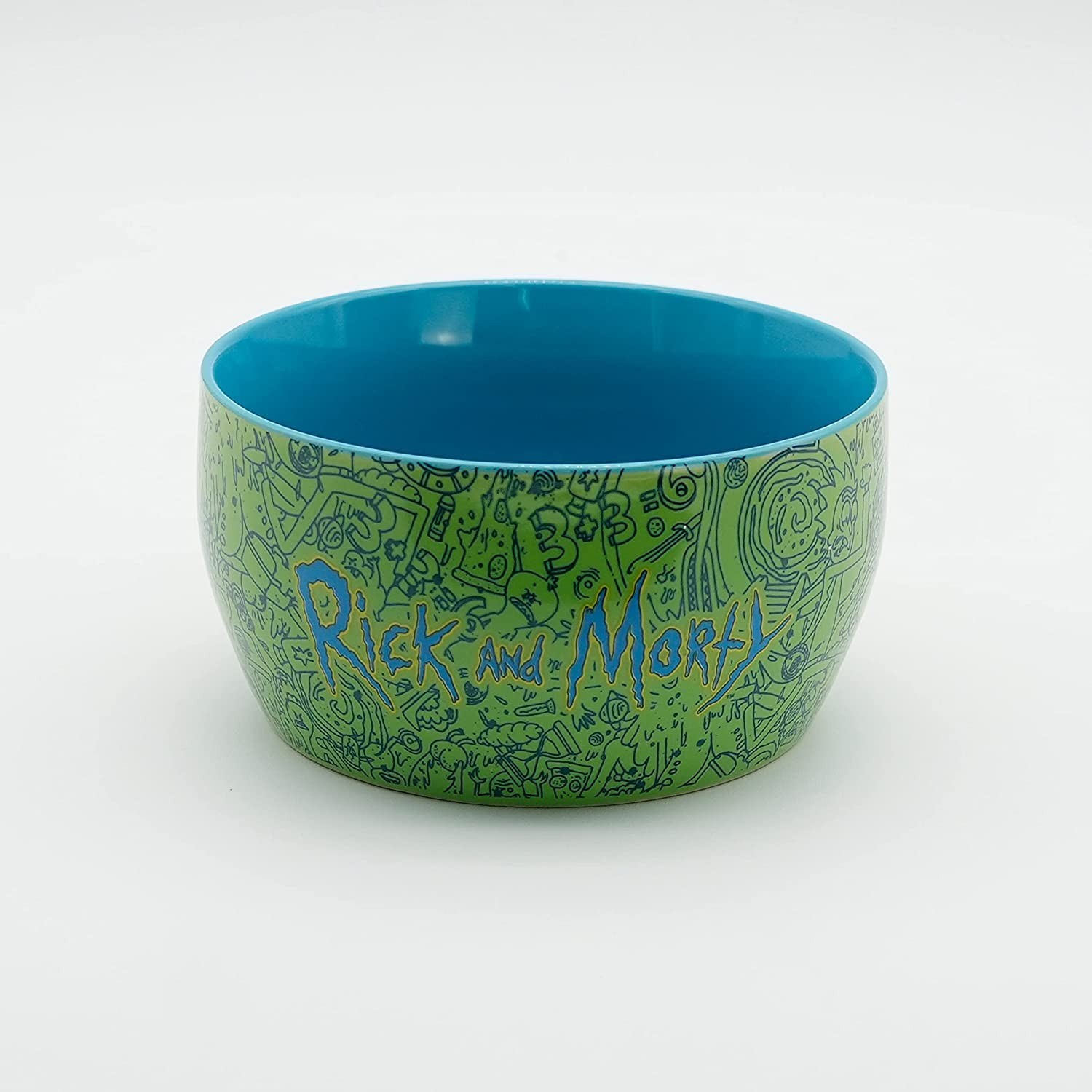 Si quieres vivir aventuras tan locas cada día como las de Rick y Morty, primero debes desayunar como ellos. Gracias a GB Eye tenemos este genial set de desayuno de taza + bol con el que podrás empezar cada día de la misma forma que el dúo más aventurero de la televisión. Nacidos en el seno de la cadena Adult Swim, logo que por cierto tiene la caja en la parte exterior, Rick y Morty nos han dado infinidad de icónicos momentos, personajes, diseños y lugares. Parte de todo eso lo podrás encontrar en las ilustraciones en color negro que llevan la taza y el bol en el exterior de color verde, igual al de las puertas interdimensionales que usan. El interior de los dos accesorios es de color azul. Están hechas en cerámica de gran calidad y tienen una capacidad de 850 mls (bol) y 380 mls (taza). Son productos de licencia oficial. No apto para lavavajillas ni microondas.