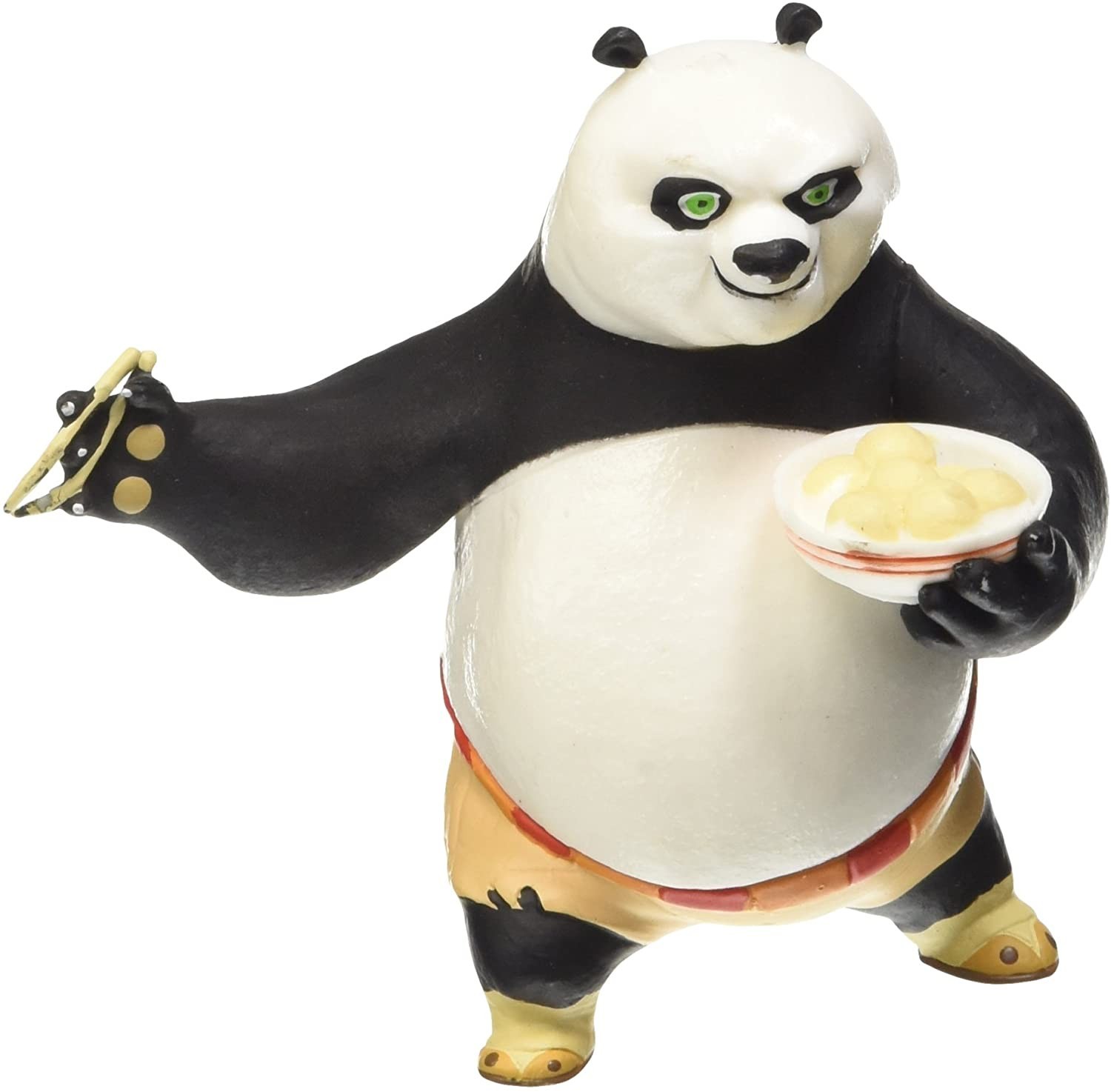 Po no solo entrena Kung Fu, también le encanta comer, como a todo el mundo, ¿verdad? Esta simpática mini figura de plástico y pintada al detalle representa al divertido protagonista de 'Kung Fu Panda' disfrutando de un delicioso plato de dumplings.