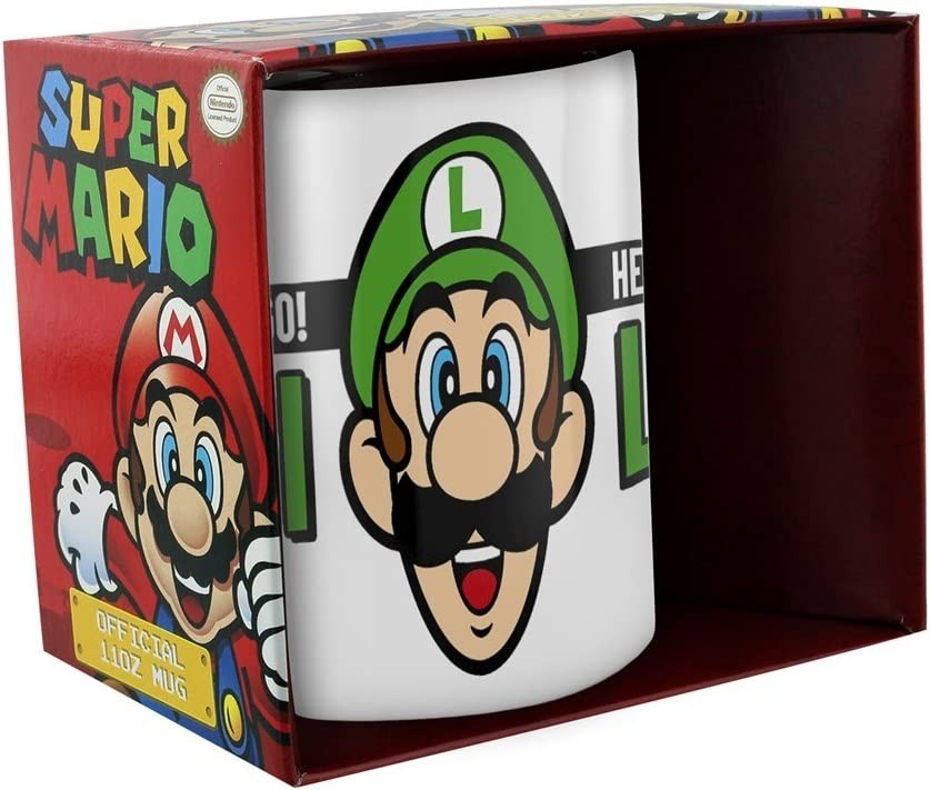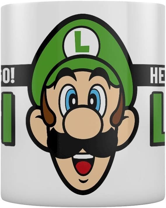 Here we go! Eso es lo que pone en esta taza de licencia oficial de Nintendo que rinde tributo al divertido Luigi, hermano de Mario y también aventurero en sus ratos libres. La marca Pyramid International ha creado esta exclusiva taza de cerámica de 320 mls de capacidad que celebra uno de los personajes más icónicos del mundo de los videojuegos. Además de la frase lleva una ilustración de la cara de Luigi con su aspecto clásico en 2D. Viene en una colorida caja temática y la taza es apta para meter al lavavajillas y al microondas.