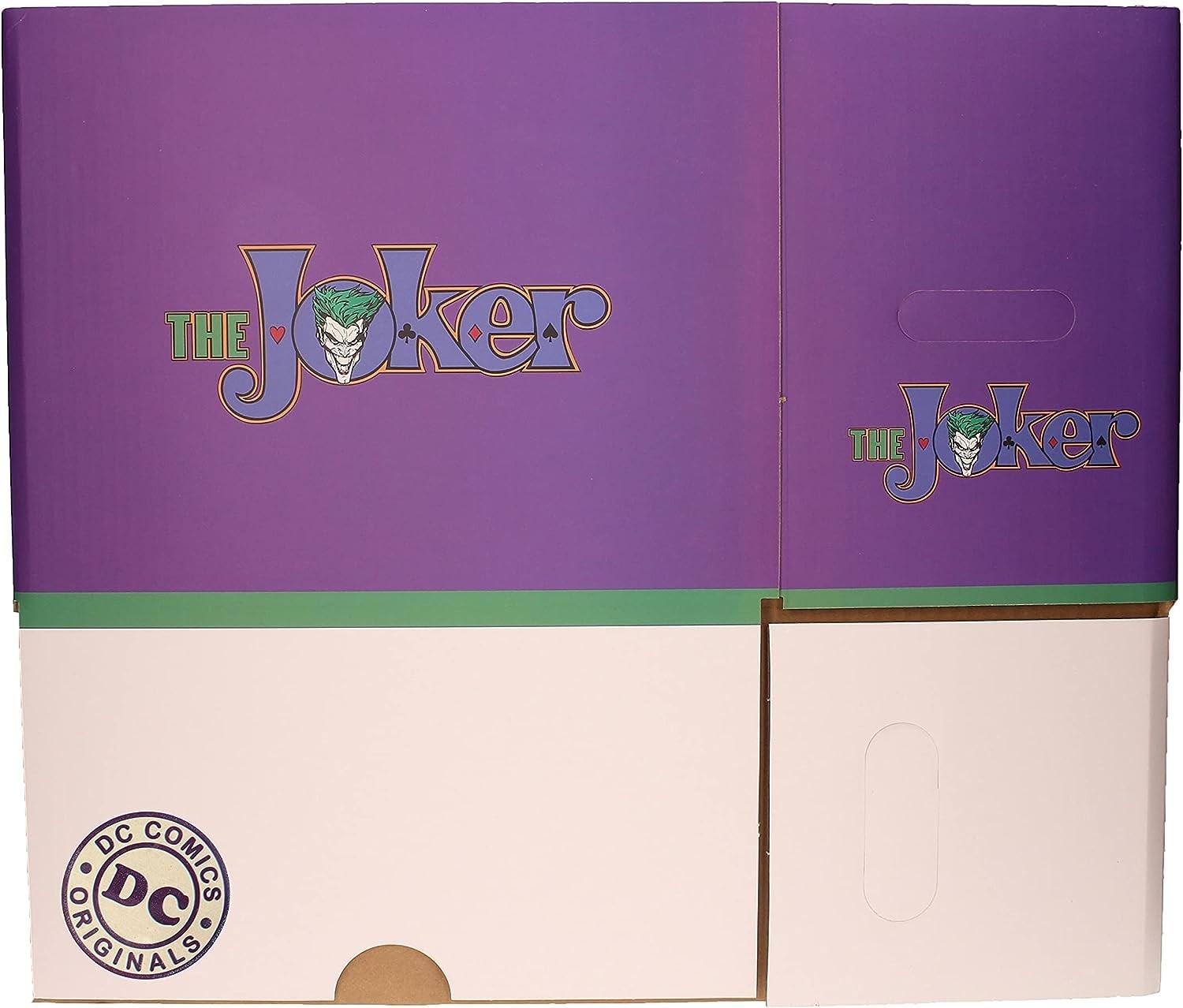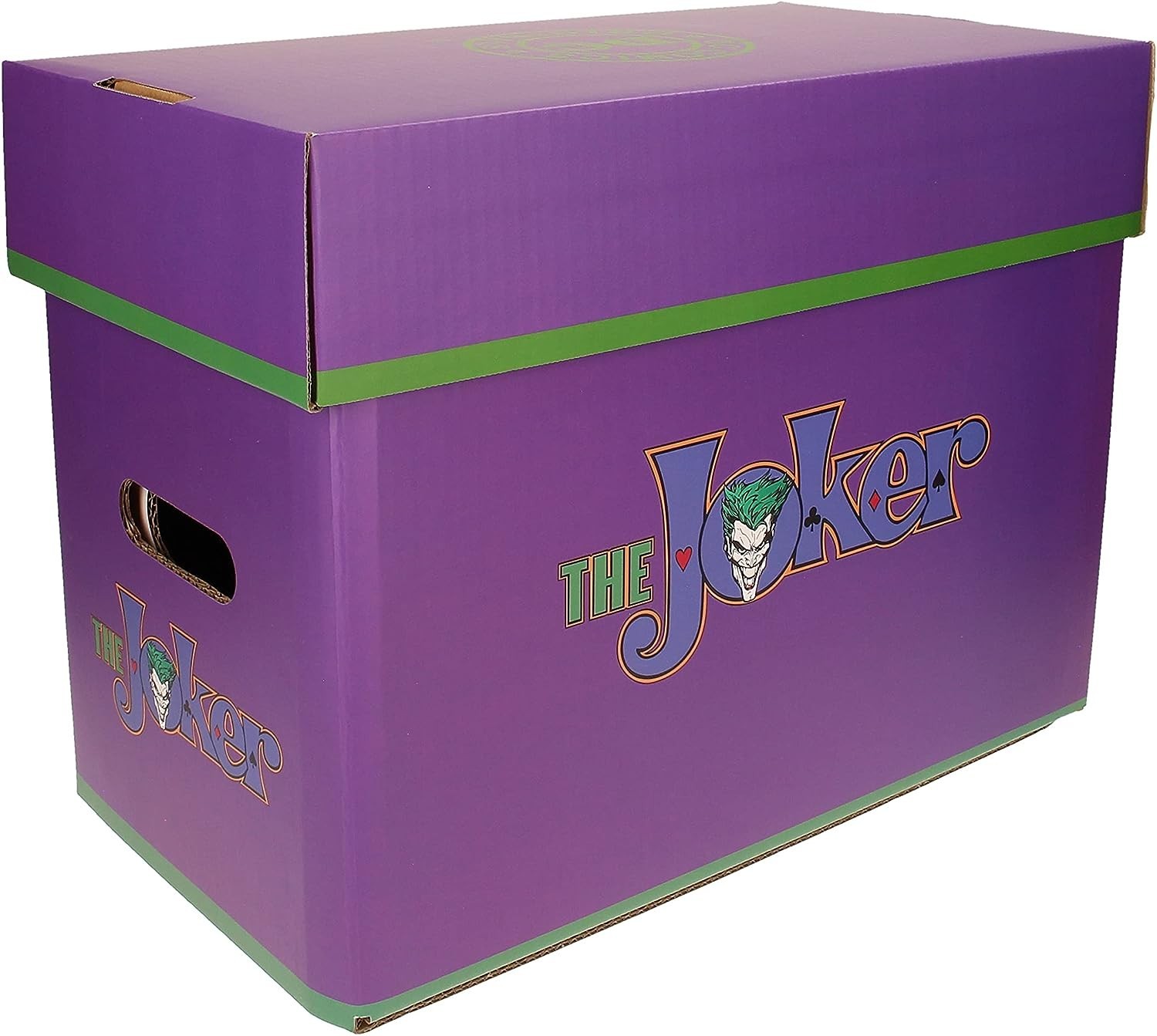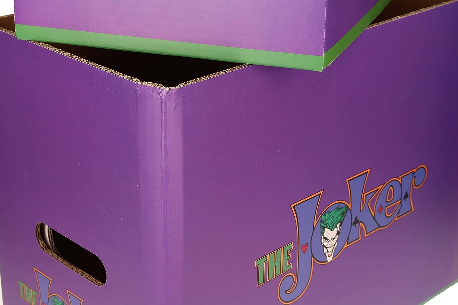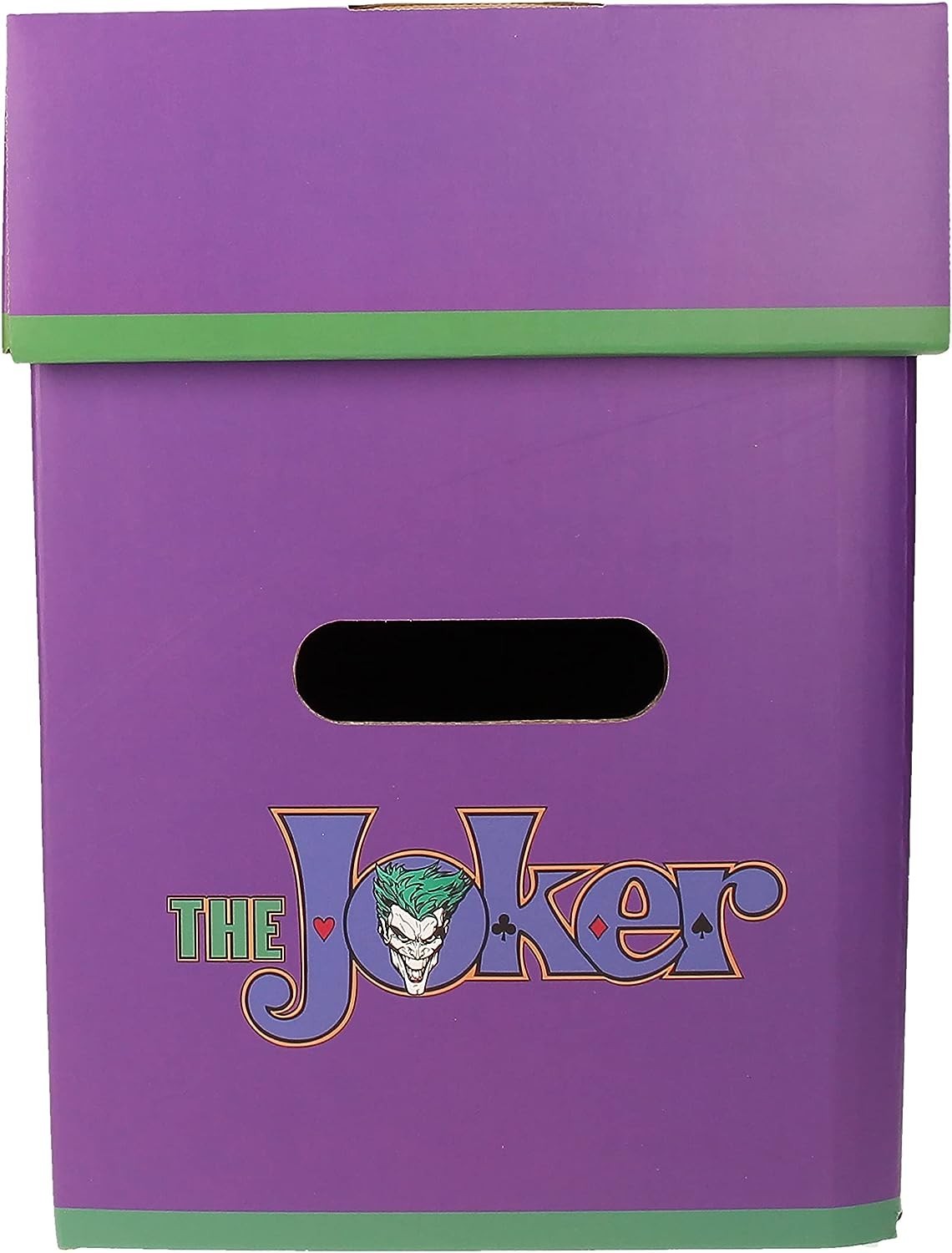 Los coleccionistas estáis de enhorabuena. Ahora podréis guardar vuestros cómics favoritos con estas cajas de SD Toys. Esta en concreto está insprada en el Joker, el archienemigo de Batman, y está decorada en morado y verde, los colores del personaje. Tiene tapa para proteger su contenido del sol y del polvo, además, está libre de ácidos para que las condiciones de conservación sean las más óptimas. Una vez la hayas montado, la caja medirá unos 40 x 21 x 30 cms. El logo del Joker y su cara están impresos en los laterales para darle un toque aún más ‘bufonesco’.