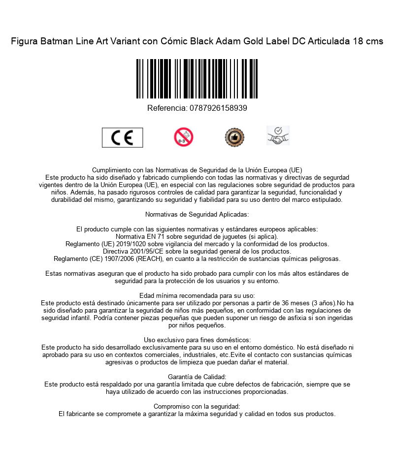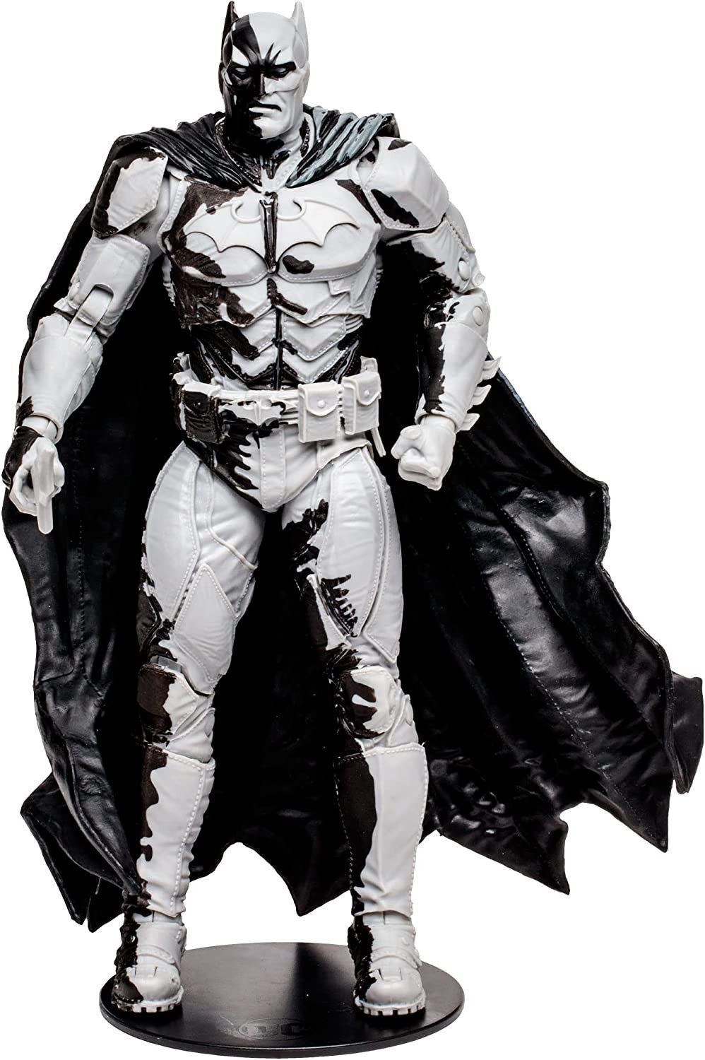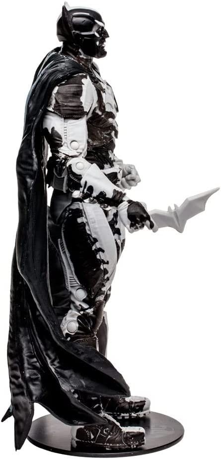 Batman es el justiciero enmascarado más famoso de DC cómics y McFarlane Toys te lo trae en una figura articulada original, impresionante y exclusivamente enmarcada dentro de la línea DC Direct Gold Label. Se trata del Batman Line Art Variant que viene con una peana de exposición y un batarang. La figura articulada de 18 cms está pintada exclusivamente en colores blanco y negro de modo que parece que el entintador ha pintado la silueta del Hombre Murciélago sobre el papel. Allí donde la pongas, esta figura será la protagonista y la envidia del resto de fans de este personaje creado por Bob Kane y Bill Finger. Además, dentro de la caja encontrarás un cómic exclusivo (en inglés) de Black Adam con una portada arrebatadoramente poderosa también en blanco y negro. Batman está hecho de un PVC de la más alta calidad.