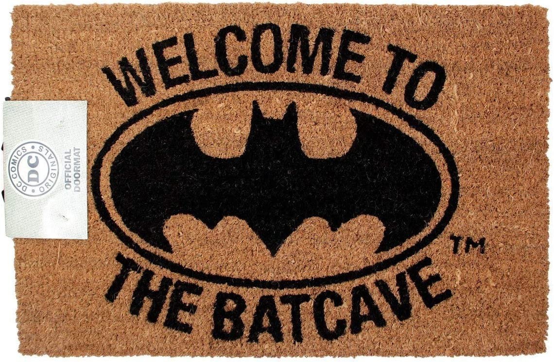 Siente que entras en tu Batcueva particular con este espectacular felpudo de licencia oficial de DC. El clásico símbolo del Hombre Murciélago está representado en negro sobre un fondo de color marrón claro. La frase ‘Welcome to the Batcave’ rodea el mítico símbolo y dará la bienvenida a todos tus invitados. Tiene unas medidas aproximadas de 60 x 40 cms y ha sido fabricado con fibra de coco gruesa de 15 mm de espesor. Para hacerlo más resistente el dorso está hecho de vinilo, así que podrás usarlo tanto en exterior como en interior. Además, cuenta con un práctico asa de plástico para facilitar su transporte. Uno de los regalos más prácticos y pintones para los fans de Batman y de DC cómics.