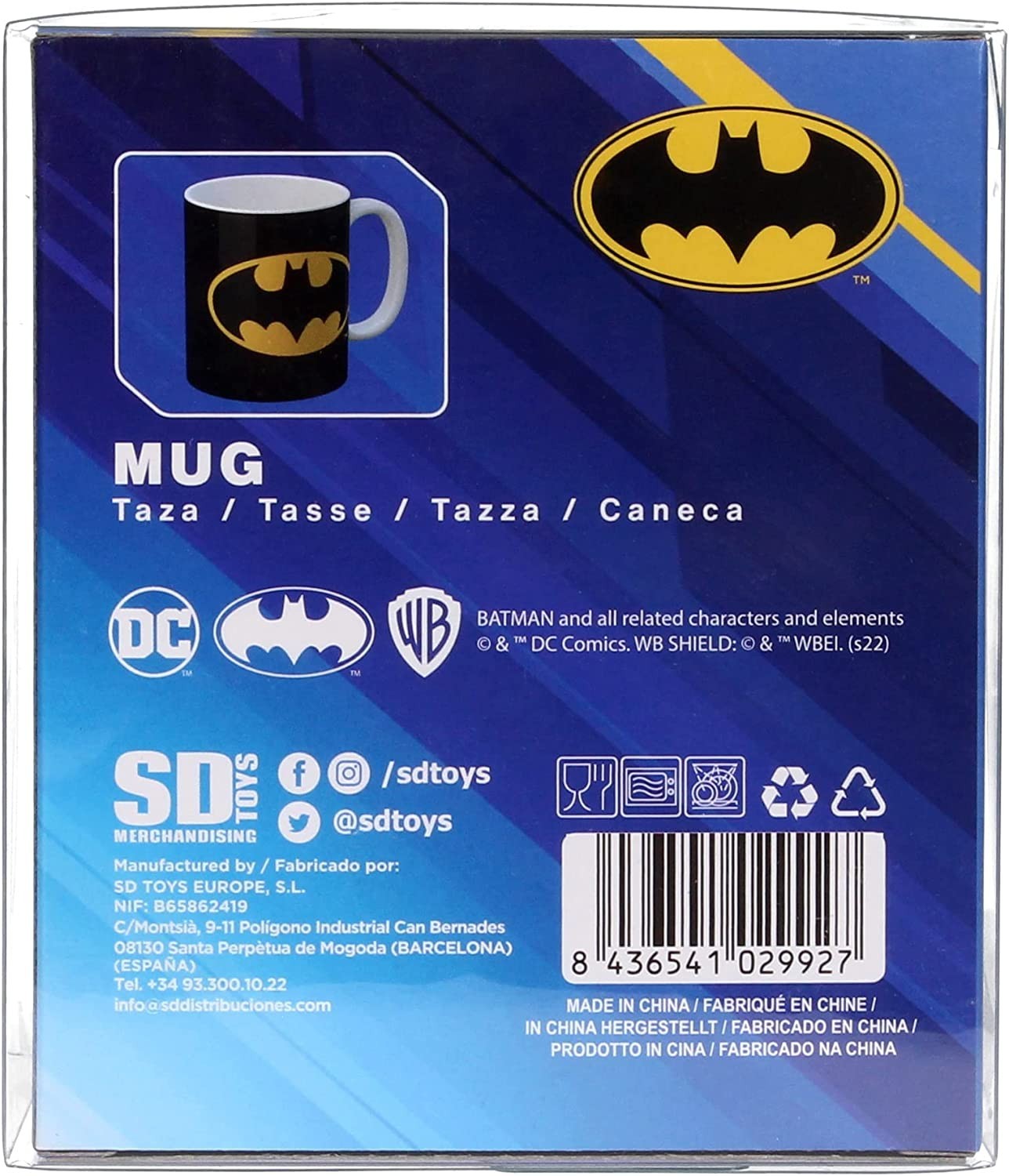 Todo el poder del Hombre Murciélago cada día en la palma de tu mano… Ahora, gracias a SD Toys, podrás sentir toda la intensidad de la iconografía de Batman en una fantástica taza de cerámica y unos 320 mls de capacidad. Tiene licencia oficial de DC y viene en una caja transparente con detalles de los bocadillos de los cómics. Además, es apta para usar en el lavavajillas y microondas. El flamante y colorido escudo amarillo y negro de Batman está presente de forma prominente en la superficie de esta taza. Hazte con ella y uno de los iconos más importante de DC será ahora parte de tu colección.
