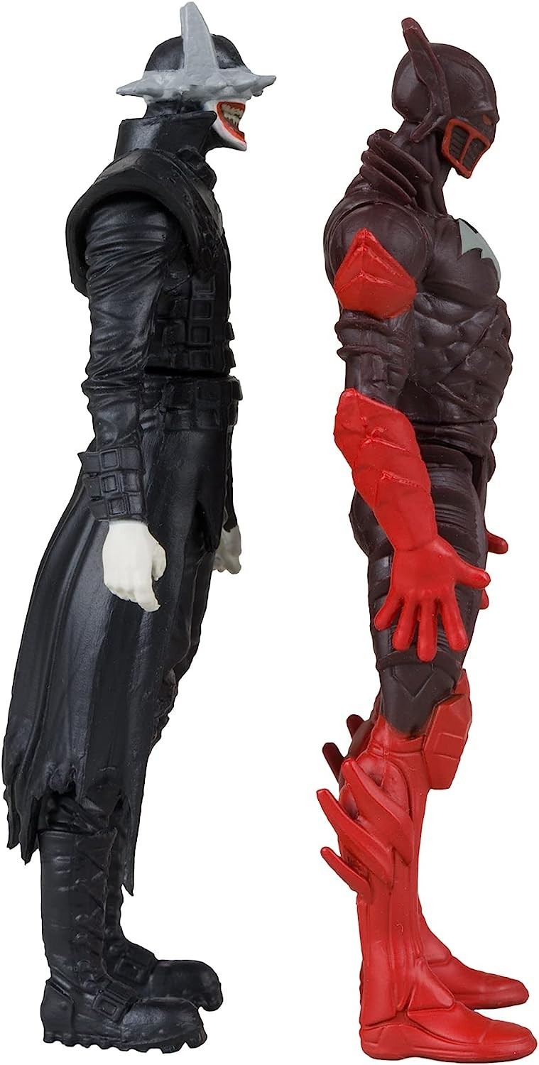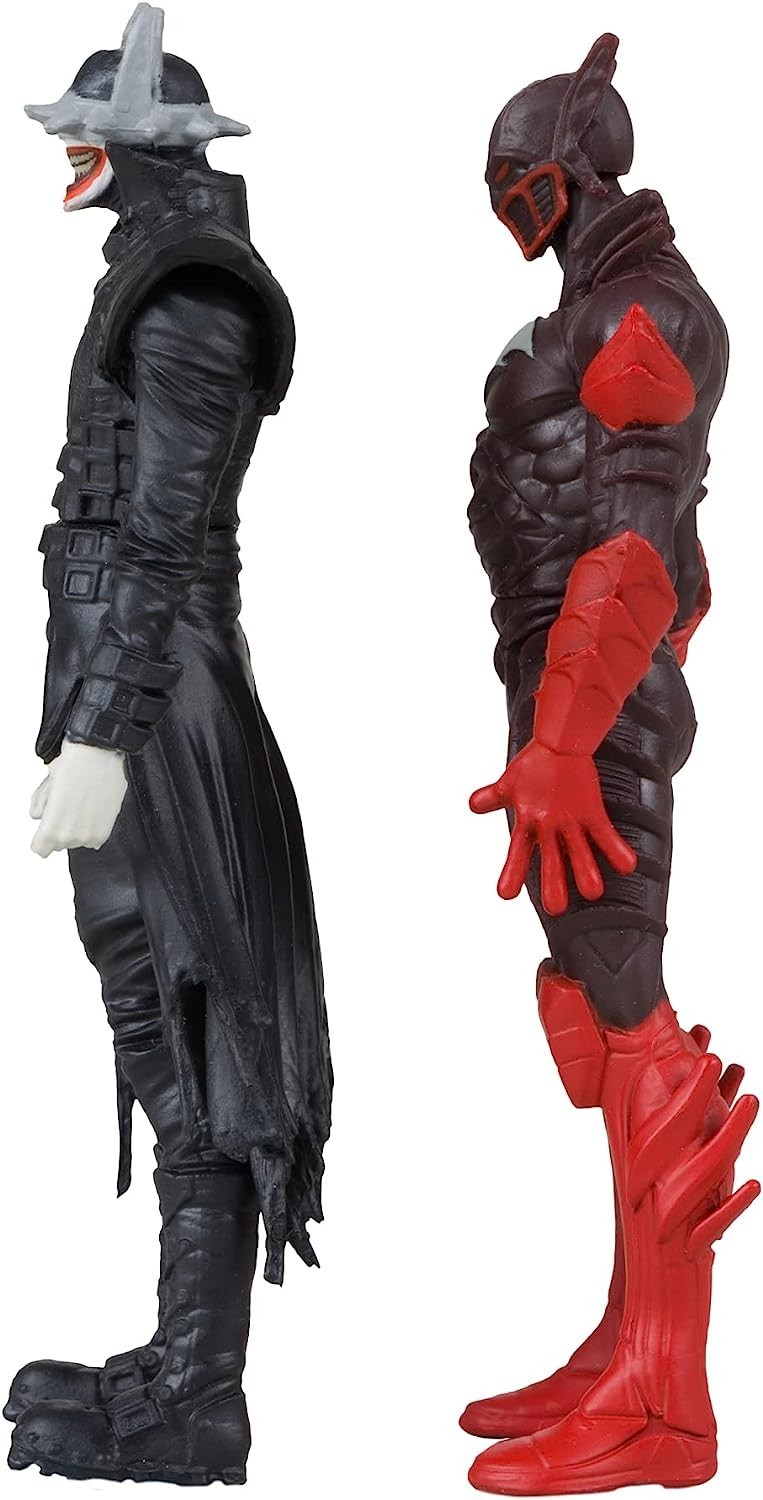 Figuras Batman Who Laughs + Batman Rojo + Cómic + Display Dark Knights Metal 8 cms