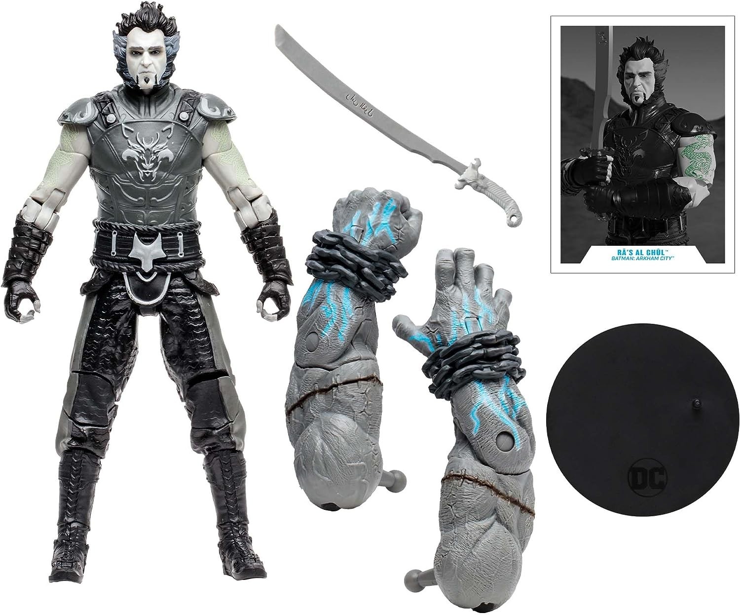 En remotos escondites es donde Ra’s Al Ghul se entrenó para convertirse en uno de los villanos más temibles y que en mayores apuros ha puesto a Batman a lo largo de la historia del héroe en los cómics. McFarlane Toys, bajo su sello Gold Label, te trae al archienemigo del murciélago en forma de figura articulada de 18 cms hecha de PVC de gran calidad. Pertenece a la línea DC Multiverse y está basado en la versión de Ra’s que aparece en el videojuego Batman: Arkham City. Viene con accesorios como una espada, tarjeta coleccionable del personaje, peana de exposición y una pieza para construir a tu propio Solomon Grundy gracias al extra Collect To Build. Junta todas las piezas de la colección y tendrás a Solomon en tu alineación de villanos del cruzado de la capa.