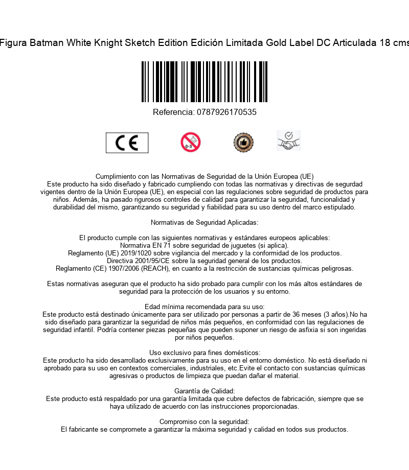 Una de las figuras más espectaculares y únicas de Batman llega a tu colección. Se trata del Batman White Knight. Es la edición limitada Sketch Edition de la que solo hay 5800 piezas en todo el mundo dentro de la línea Gold Label. Este figurón articulado de 18 cms está pintado en blanco y negro como si fuera una figura entintada en la superficie de una hoja de un artista de cómic. Incluye accesorios como batarang con cuerda, batarang con cuerda extendida, peana de exposición, tarjeta coleccionable, peana para la tarjeta y herramienta. El Batman White Knight ha llegado para quedarse…