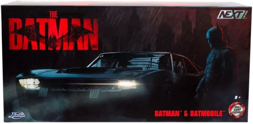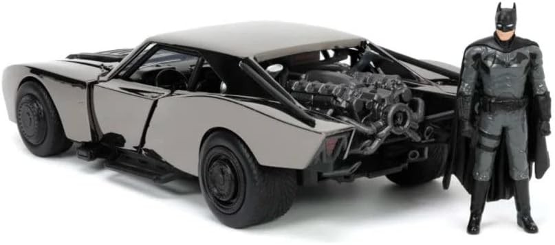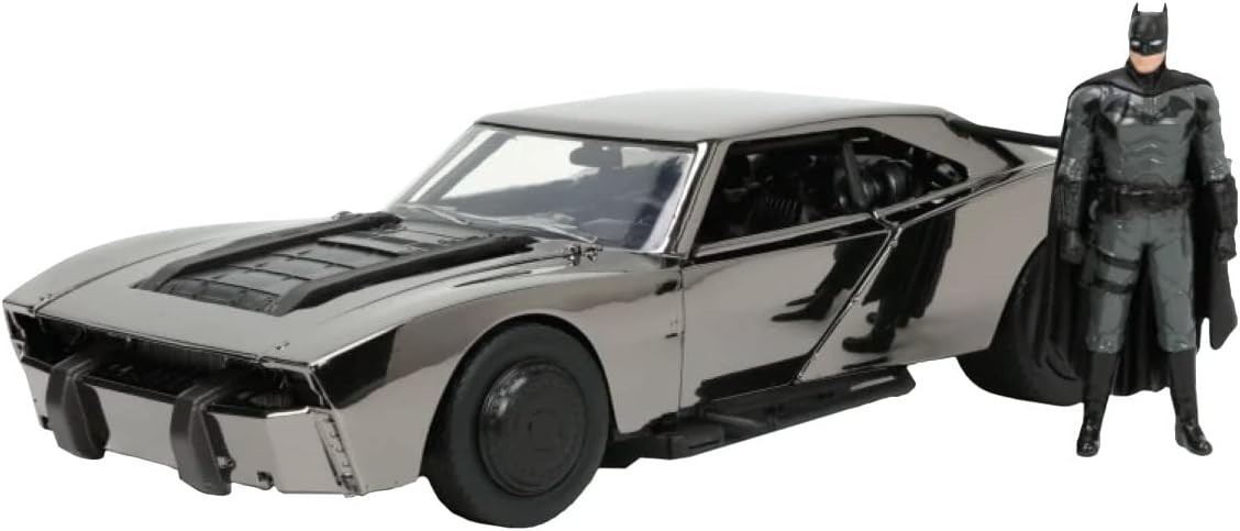El batmobile es el legendario vehículo de Batman, y ha tenido tantas versiones como el mismísimo Caballero Oscuro. La versión que Jada nos trae aquí es la del Batman de Robert Pattinson. La réplica del Batmobile mide nos 20 cms de largo y tiene escala 1/24. Está hecho de PVC y Die Cast metálico en un acabado negro cromado espectacular que le da un aspecto aún más robusto. Es un producto de licencia oficial de “The Batman” de incluye una figura del cruzado de la capa interpretado por Robert Pattinson. Viene en una elegante caja con el símbolo del murciélago en rojo y atractivas fotos del vehículo.