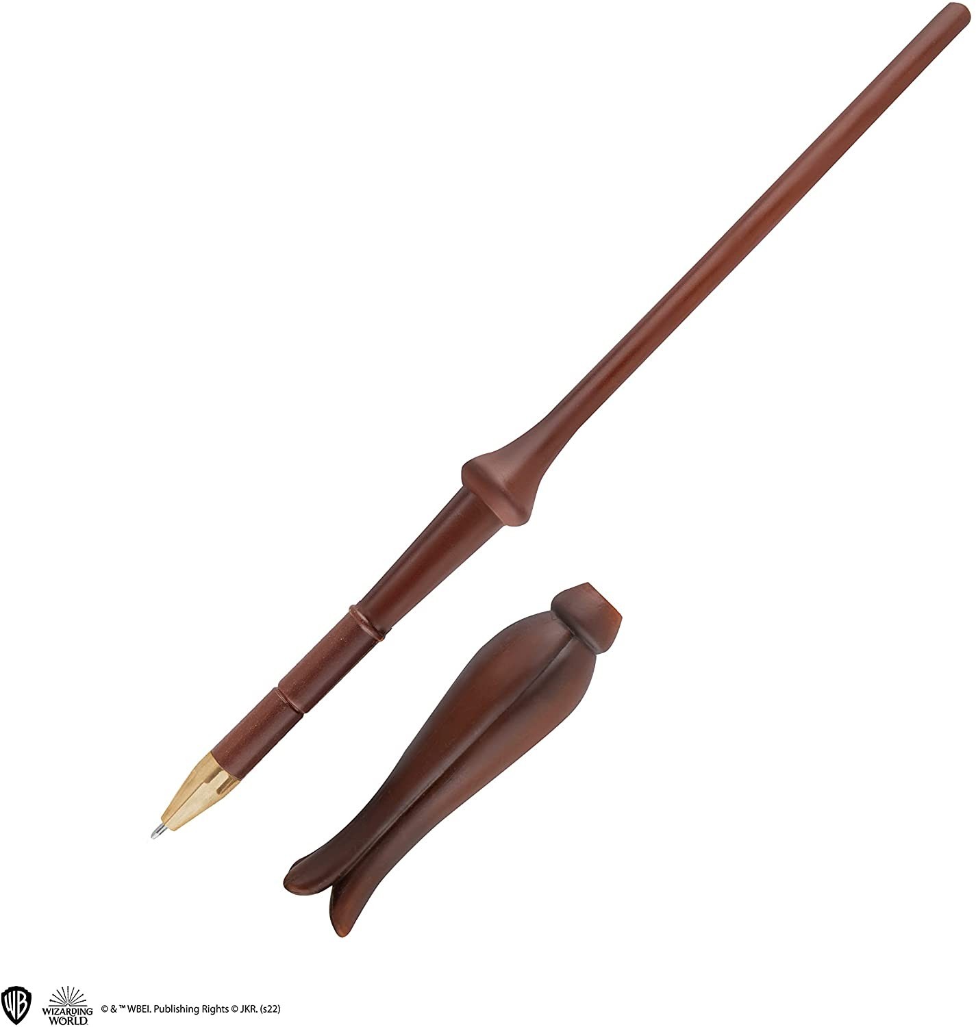 La marca Cineréplicas vuelve a la carga con otra sensacional y práctica réplica del Wizarding World. La varita de la peculiar Luna Lovegood ahora puede ser tuya en la forma de bolígrafo con tapa y base (stand) con el escudo de Hogwarts en acabados dorados. Está tallada con todos los detalles de la varita original, desde el mango (tapa) hasta el cuerpo (bolígrafo) de la varita. Además, este regalazo incluye un marcapáginas lenticular del personaje para que marques tu progreso en las novelas de Harry Potter o en los libros de hechicería (o leyendas) que estés estudiando. Si te gustan los regalos útiles o conoces a alguien que sea un auténtico fan de la saga creada por JK Rowling, este bolígrafo varita será un detalle de los que recordará toda la vida.