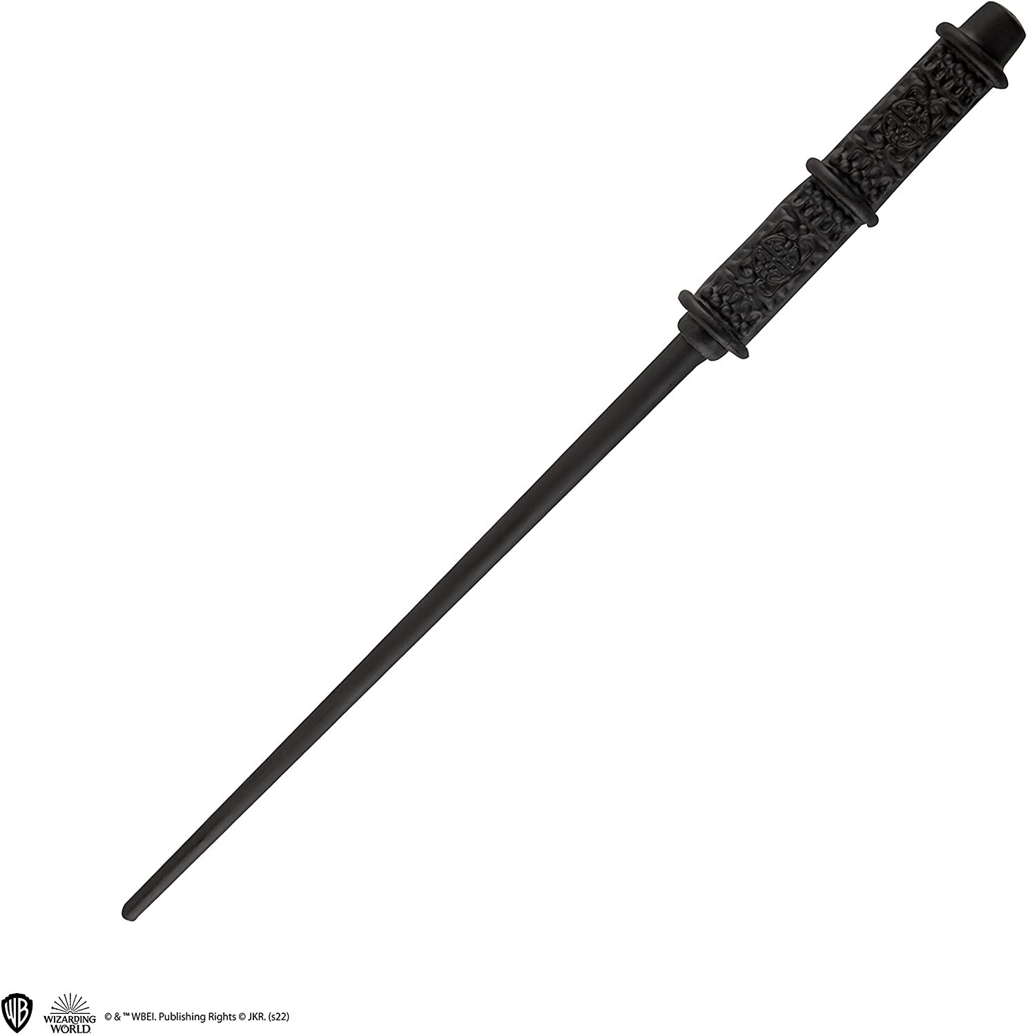 La marca Cineréplicas vuelve a la carga con otra sensacional y práctica réplica del Wizarding World. La varita del misterioso Severus Snapet, profesor de pociones de Harry, ahora puede ser tuya en la forma de bolígrafo con tapa y base (stand) con el escudo del colegio en acabados dorados. Está tallada con todos los detalles de la varita original, desde el mango (tapa) hasta el cuerpo (bolígrafo) de la varita. Además, este regalazo incluye un marcapáginas lenticular del personaje para que marques tu progreso en las novelas de Harry Potter o en los libros de hechicería (o historia) que estés estudiando. Si te gustan los regalos útiles o conoces a alguien que sea un auténtico fan de la saga creada por JK Rowling, este bolígrafo varita será un detalle de los que recordará toda la vida.
