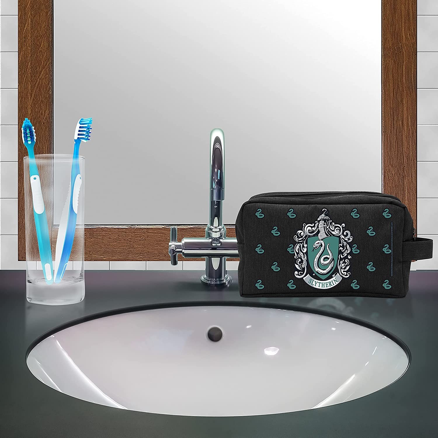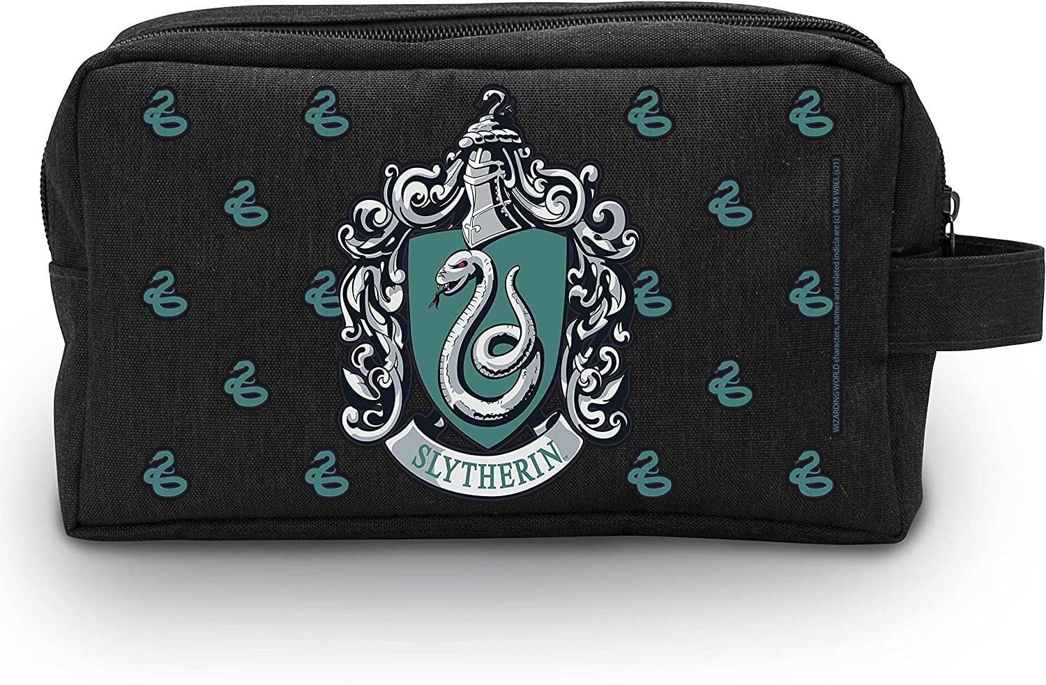 El Colegio Hogwarts de Magia y Hechicería es el más famoso de todo el universo mágico y tiene cuatro casas a las que pertenecen sus alumnos. Si eres fan de la casa Slytherin, a la que perteneció Lord Voldemort, ahora puedes tener tu propio neceser/bolsa de aseo de la legendaria casa fundada por el mago medieval Salazar Slytherin. El práctico neceser negro de poliéster creado por Abystyle mide 26 x 14 x 8,5 cms y tiene tres bolsillos con cremallera. Es un producto con licencia oficial de la saga mágica que además cuenta con un práctico asa para transportarlo con más comodidad. Sobre uno de sus lados tiene una imagen a todo color del escudo de la casa de la serpiente y otros símbolos en color verde alrededor de este escurridizo animal. Seguro que tú también conoces a un auténtico fan de Harry Potter al que le volvería loco tener este neceser para todas sus aventuras.